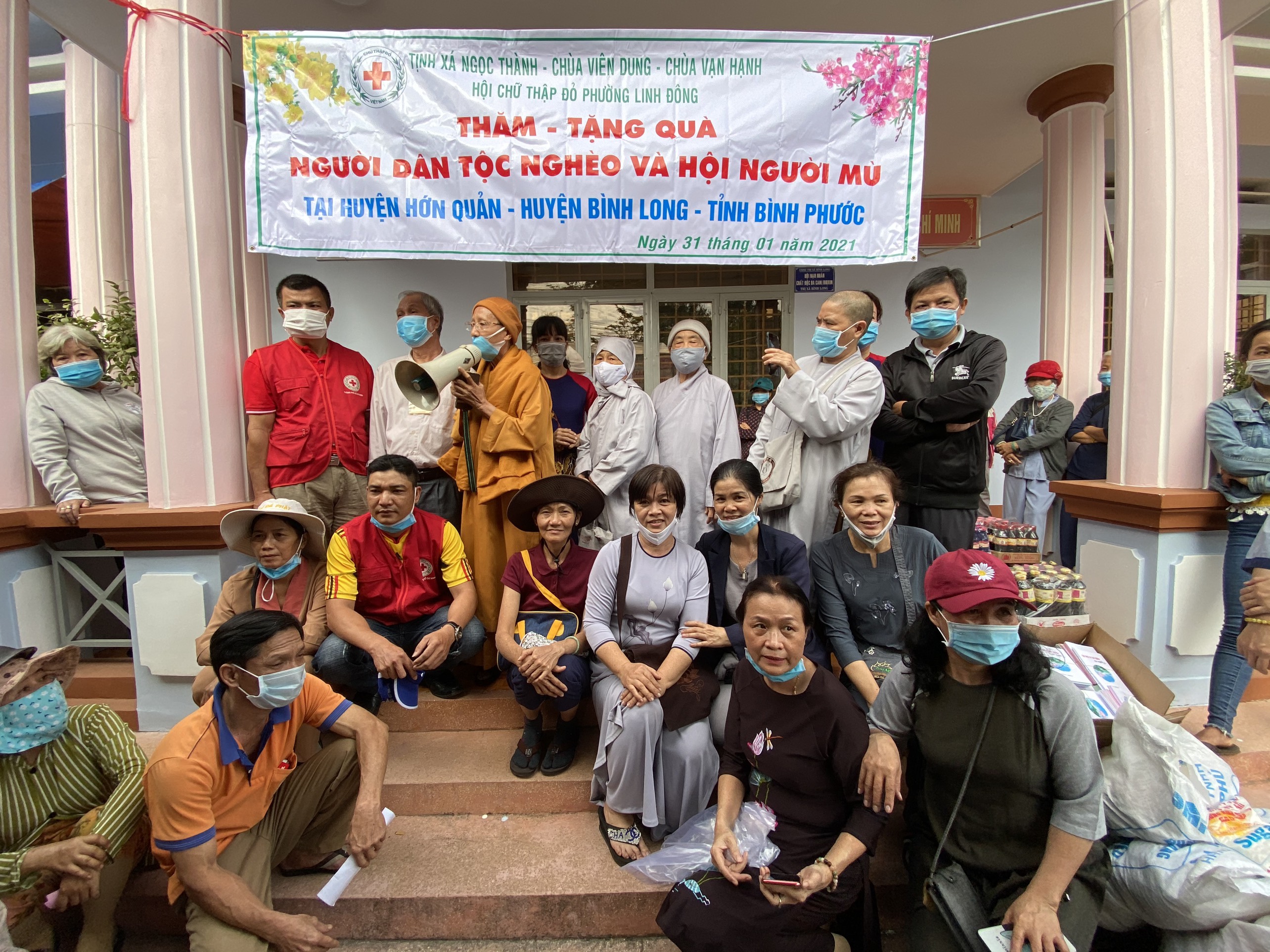 PSO - Sáng ngày 31/01/2021 (nhằm ngày 19/12 năm Canh Tý), tại Hội người mù thị xã Bình Long (phường An Lộc, thị xã Bình Long, tỉnh Bình Phước). Đoàn từ thiện Tịnh xá Ngọc Thành, chùa Viên Dung, chùa Vạn Hạnh (thành phố Thủ Đức) kết hợp với Hội chữ Thập đỏ phường Linh Đông đã trao tặng 300 phần quà cho người khiếm thị, chất độc da cam, người khó khăn cơ nhỡ tại thị xã Bình Long.