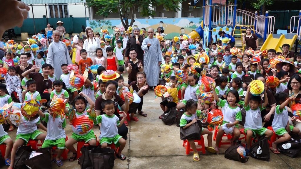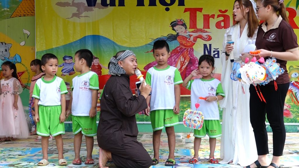 Tại từng điểm trường các em mong được gặp chú Cuội và chị Hằng do Phương Nguyễn hóa thân, đoàn đã có những chương trình đố vui tặng thuỏng cùng nhiều tiết mục múa, trình diễn thời trang do trường mầm non Vàng Anh tổ chức. Tại các điểm trường quý Thầy Cô đã có những lời thăm hỏi và gửi lời tri ân đến với đoàn mong tất cả có thật nhiều sức khỏe và thành tựu mọi công tác Phật sự.