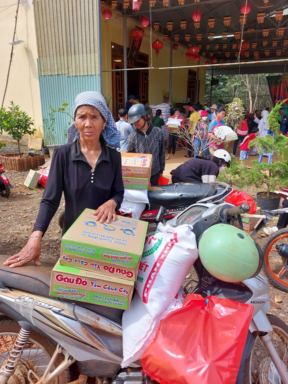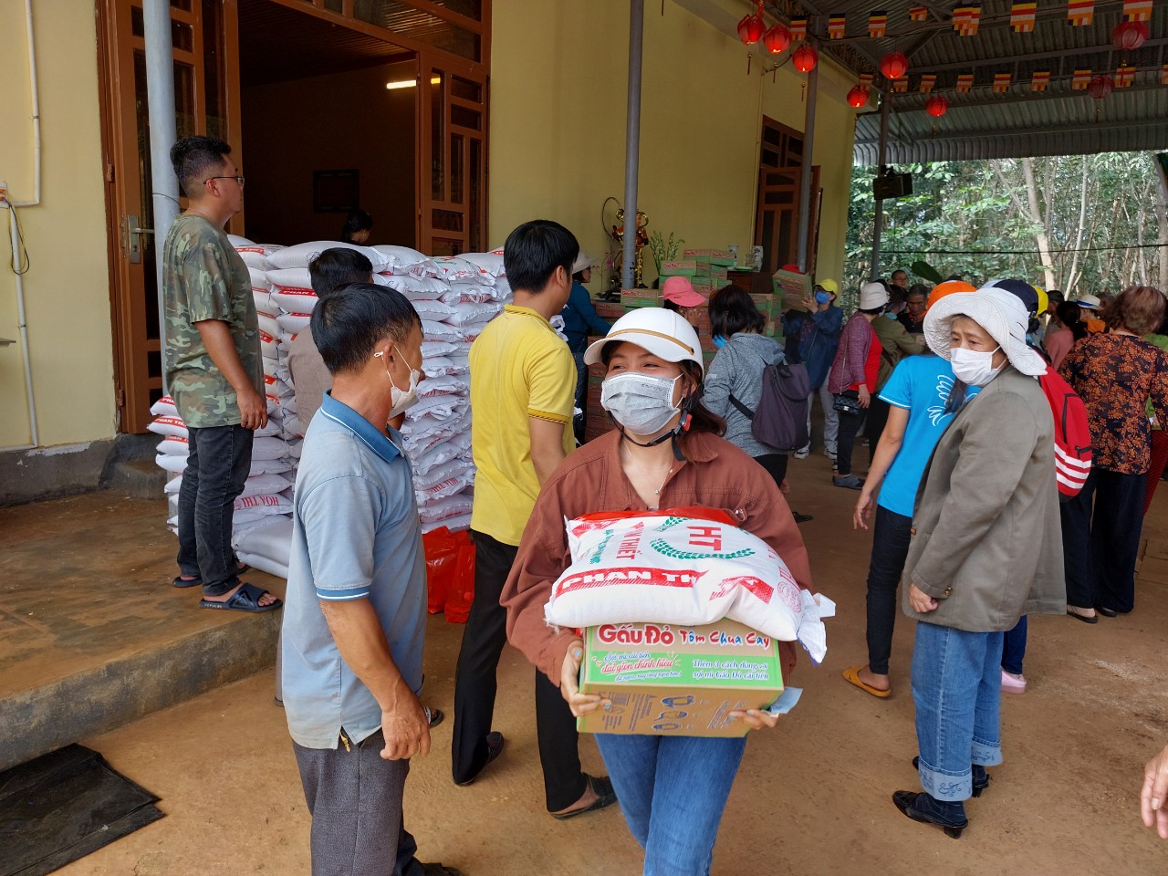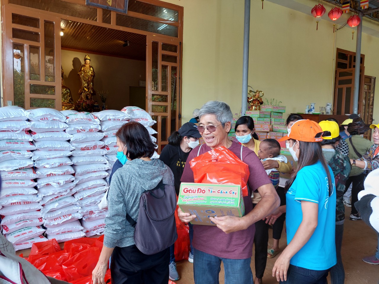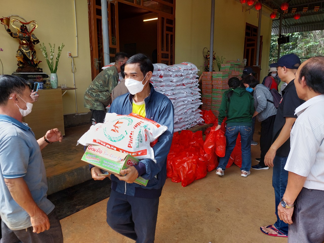 - Tại chùa Hương Lâm, thôn Đắk Côn, xã Bù Gia Mập đoàn đã trao tặng 300 phần quà cho bà con dân tộc khó khăn ở các thôn trong xã. Tổng mỗi phần quà được trao tặng cho bà con nơi đây là 350.000 đồng gồm: 10 kg gạo, 1 thùng mì, 1 kg đường, 1 kg muối, 1 chai dầu ăn, 2 chai nước tương, 10 cái khẩu trang và 50.000 đồng tiền mặt.