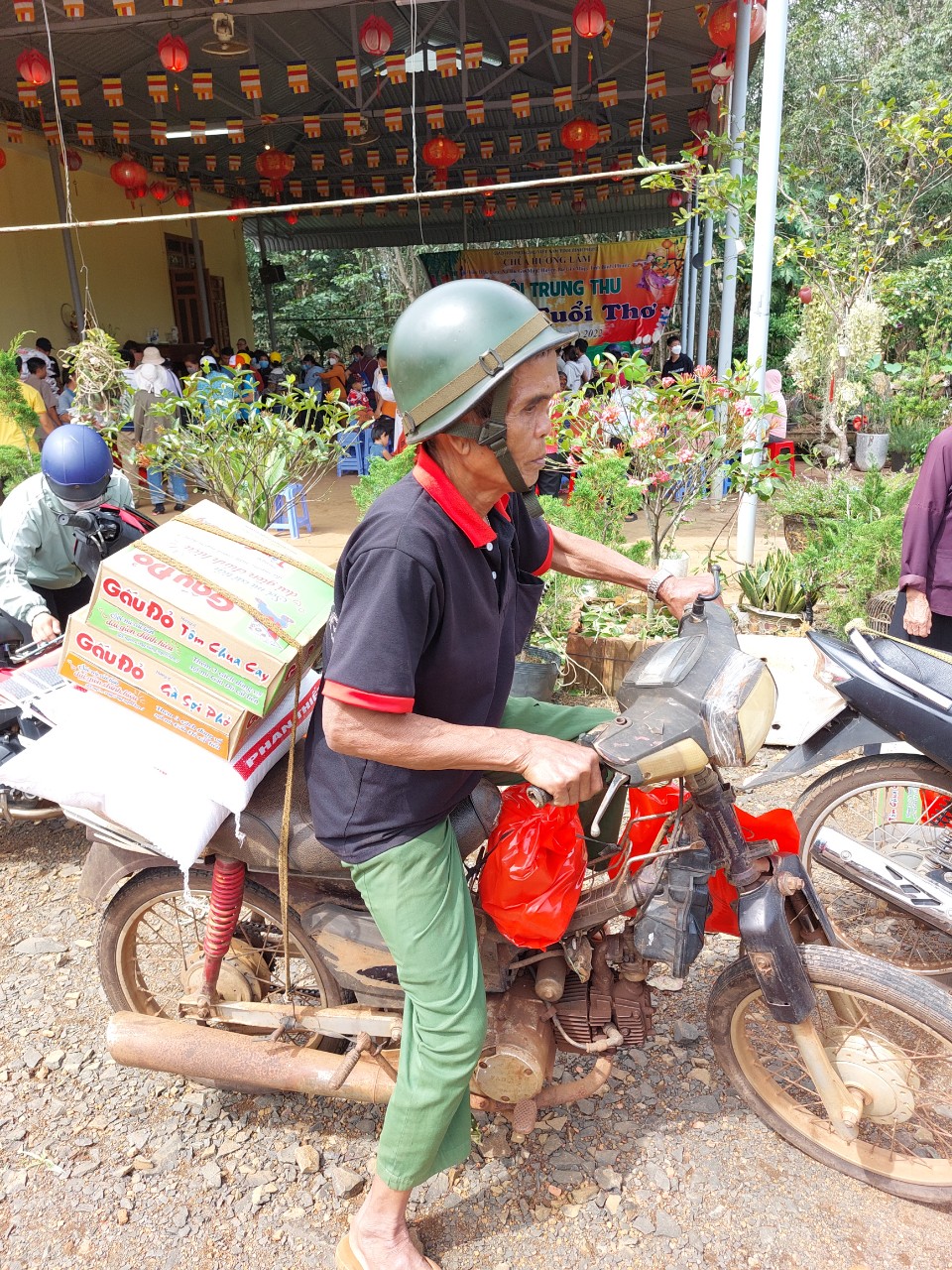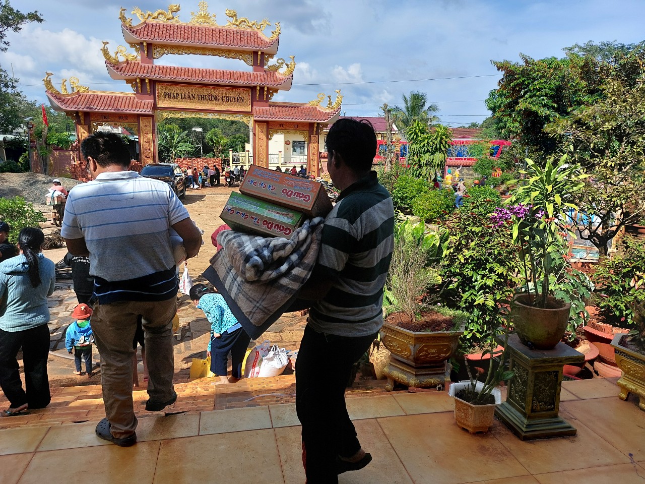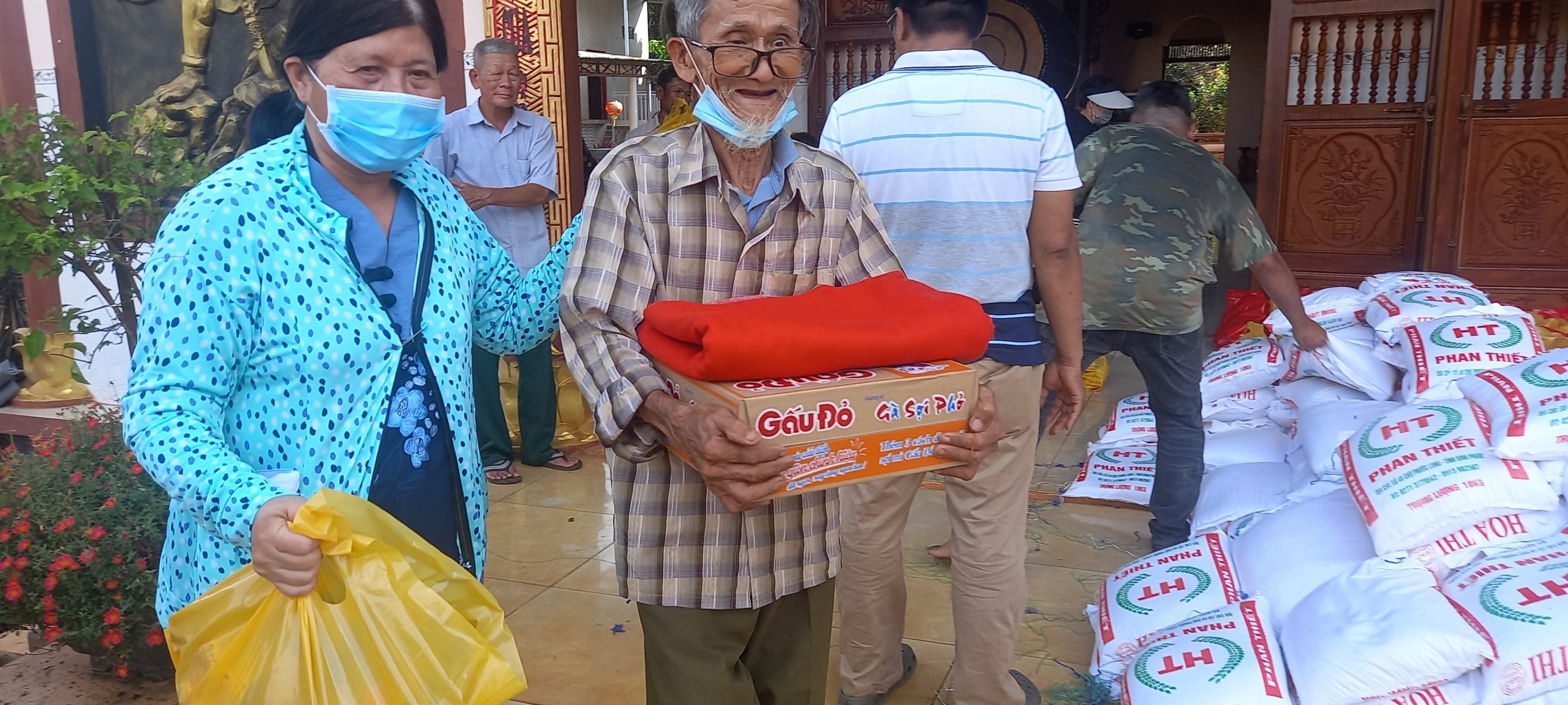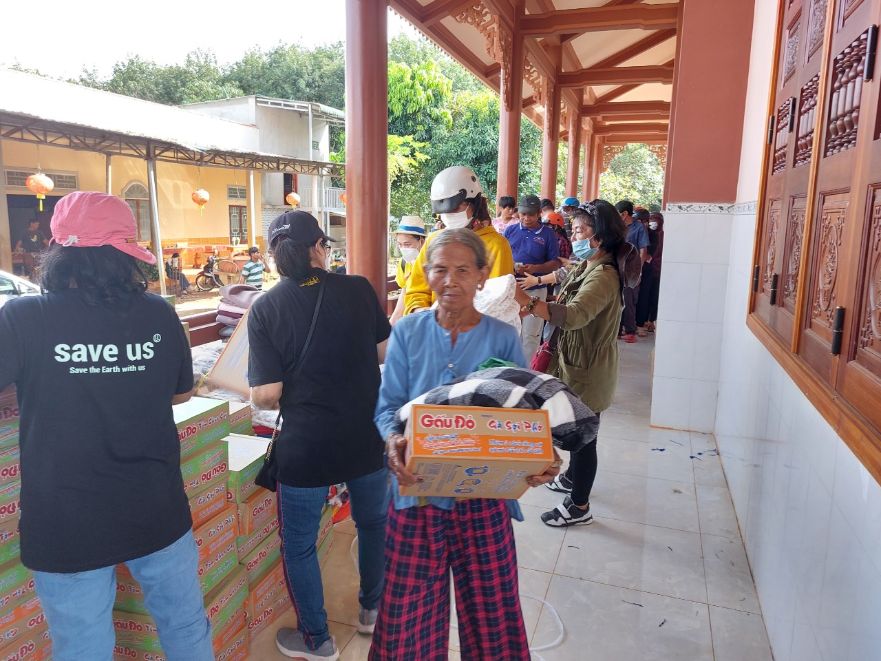 - Tại chùa Hương Lâm, thôn Đắk Côn, xã Bù Gia Mập đoàn đã trao tặng 300 phần quà cho bà con dân tộc khó khăn ở các thôn trong xã. Tổng mỗi phần quà được trao tặng cho bà con nơi đây là 350.000 đồng gồm: 10 kg gạo, 1 thùng mì, 1 kg đường, 1 kg muối, 1 chai dầu ăn, 2 chai nước tương, 10 cái khẩu trang và 50.000 đồng tiền mặt.