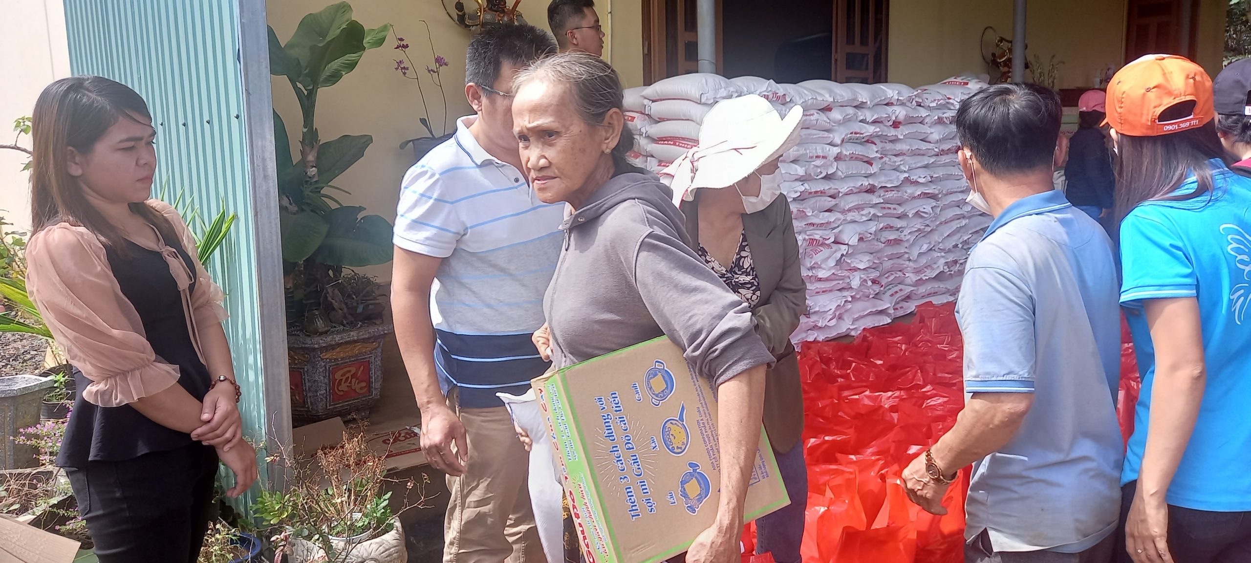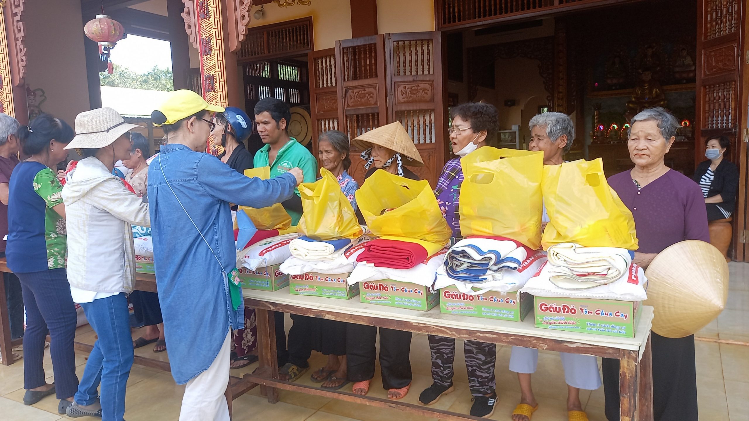 - Tại chùa Hưng Thạnh, thôn Khắc Khoan, xã Phú Nghĩa, đoàn đã trao tặng 200 phần quà. Tổng mỗi phần quà trao tặng cho bà con tại điểm thứ hai là 390.000 đồng gồm: 10 kg gạo, 1 thùng mì, 1 kg đường, 1 kg muối, 1 chai dầu ăn, 2 chai nước tương, 10 cái khẩu trang, 1 cái mền và 50.000 đồng tiền mặt.