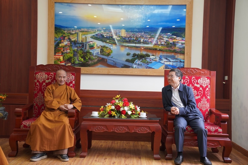 BTS Phật giáo tỉnh Lào Cai thăm và chúc Tết Đảng ủy - HĐND - UBND phường Lào Cai
