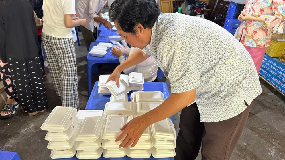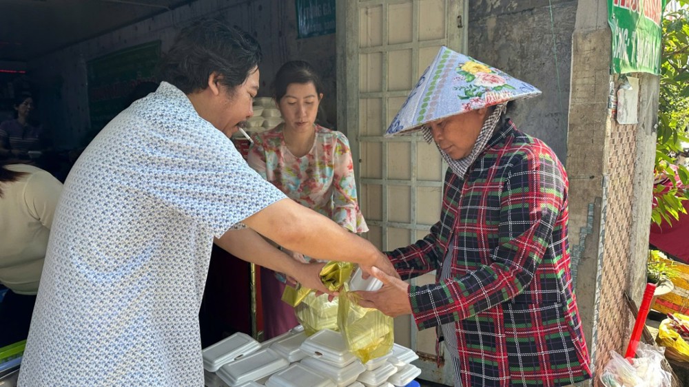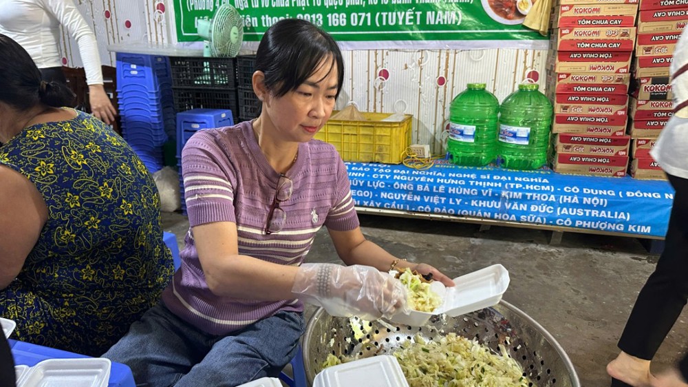 Trong buổi sáng đầy ấm áp ấy, 300 phần cơm chay được chuẩn bị chu đáo, đủ đầy rau củ, đạm thực vật và dưỡng chất cần thiết để bà con có một bữa ăn trọn vẹn. Mỗi hộp cơm không chỉ đơn giản là tấm lòng sẻ chia, mà còn là sự quan tâm chân thành, là lời động viên nhẹ nhàng gửi đến những mảnh đời còn nhiều vất vả.