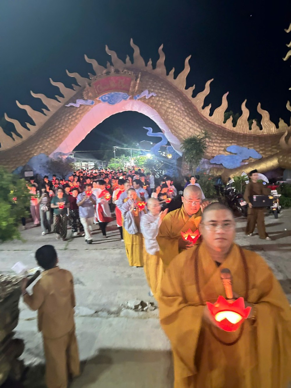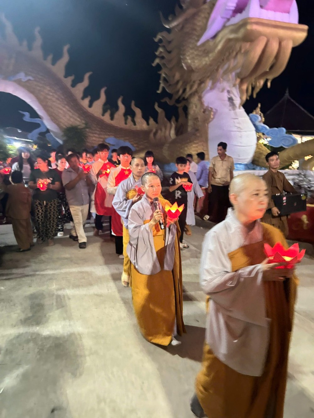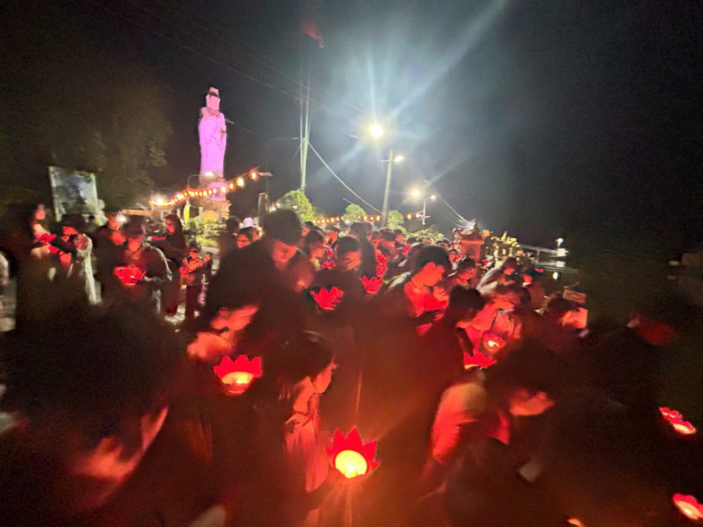 Đêm xuống, không gian trở nên tĩnh lặng và nhiệm màu trong ánh sáng của hàng trăm hoa đăng. Đại chúng cùng trì tụng kinh chú, xưng niệm danh hiệu Bồ tát, rồi nhẹ nhàng thả những ngọn đèn xuống dòng nước. Mỗi ánh đèn là một lời nguyện lành, một niềm tin gửi gắm – nguyện cho tất cả chúng sinh đều được soi sáng, vượt qua mê lầm, trở về bến bờ an lạc.