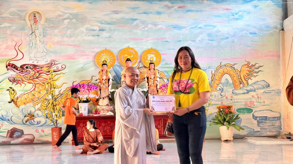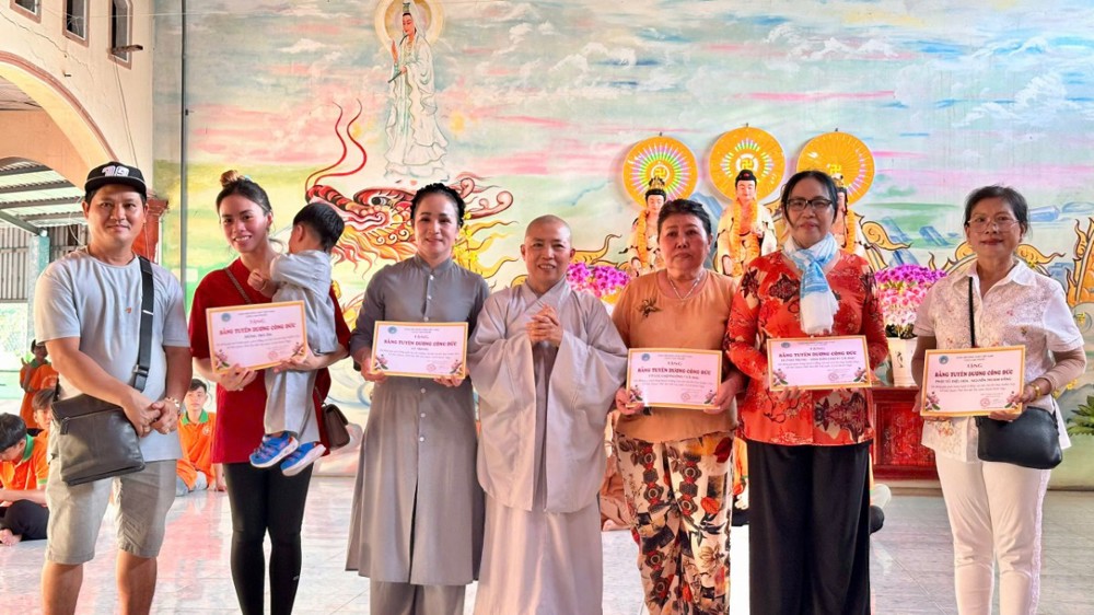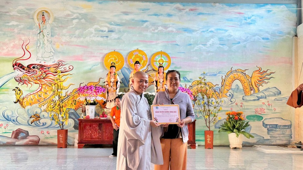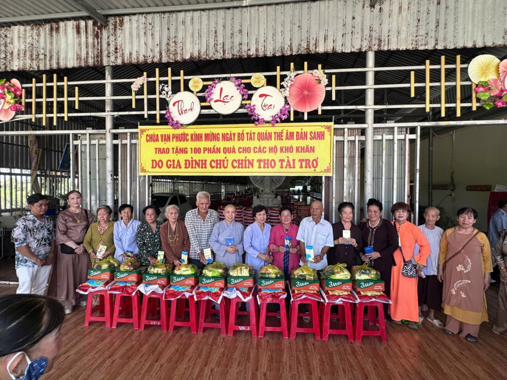 Tinh thần từ bi không dừng lại ở lời kinh tiếng kệ, mà được hiện thực hóa qua những hành động thiết thực. Nhân dịp này, Ni sư trụ trì đã trao tặng 100 phần quà trị giá 40 triệu đồng, đến các hộ gia đình còn nhiều khó khăn tại địa phương. Những phần quà tuy giản dị, nhưng chứa đựng tình người ấm áp, là sự sẻ chia chân thành trong tinh thần từ bi.