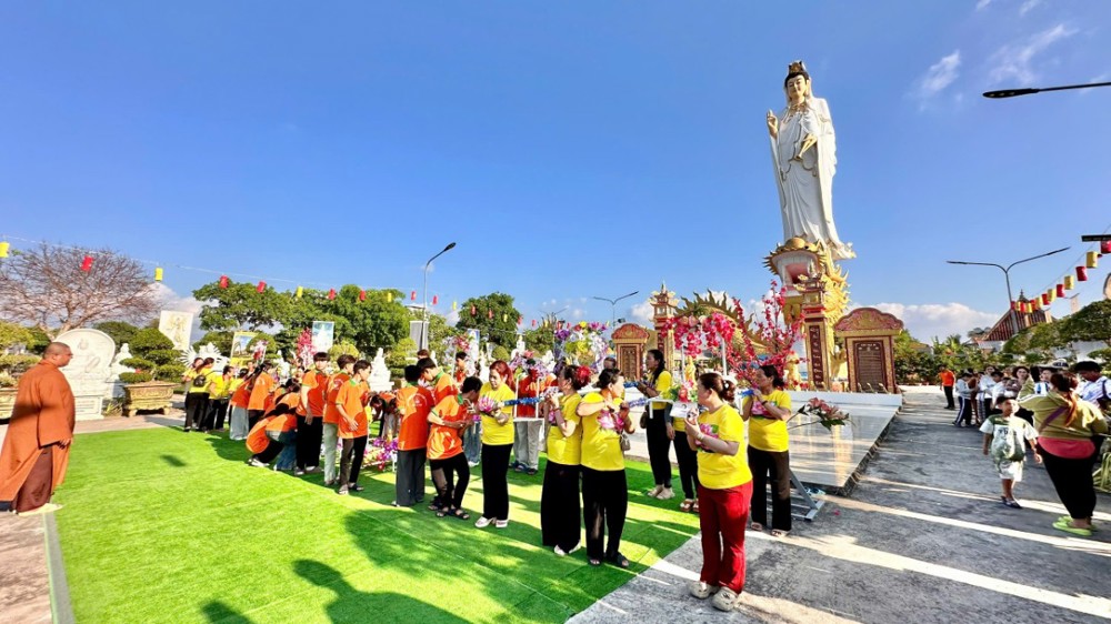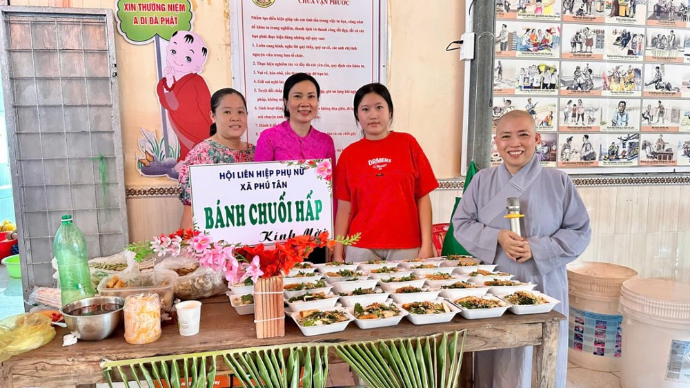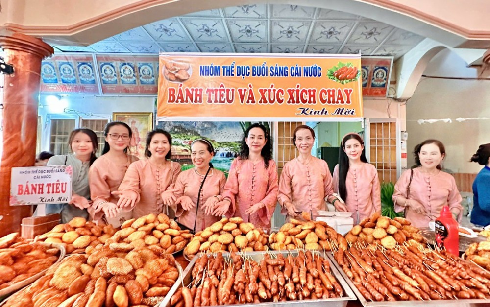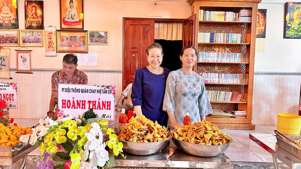 Sau lễ, đại chúng cùng tham dự buffet chay thân tình với hơn 20 món ăn do các nhóm thiện nguyện chung tay chuẩn bị. Đó không chỉ là sự nuôi dưỡng thân thể, mà còn là sự nuôi dưỡng tình người, tình đạo trong sự hòa hợp và sẻ chia.