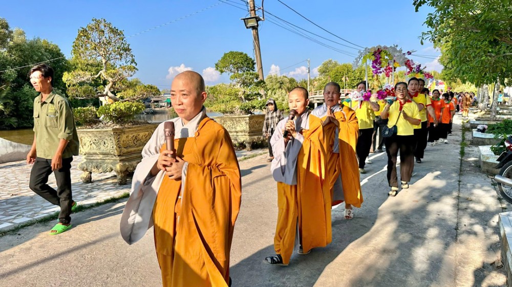 Nối tiếp chương trình, đại chúng cùng nhất tâm niệm Thánh hiệu: Nam mô Bồ tát Quan Thế Âm và trang nghiêm cử hành lễ rước kiệu. Từng bước chân chậm rãi, từng câu niệm thanh tịnh như đưa người tham dự trở về với sự tĩnh lặng sâu xa trong tâm thức.