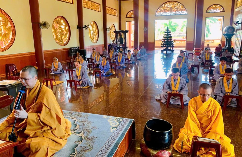 Trong không khí thanh tịnh và thành kính, chư Tăng cùng Phật tử đồng tụ hội, nhất tâm hành trì pháp hội trì 108 biến thần chú Đại Bi, đồng thời trì tụng phẩm Phổ Môn – tán dương hạnh nguyện từ bi cứu khổ của Đức Bồ Tát Quán Thế Âm.