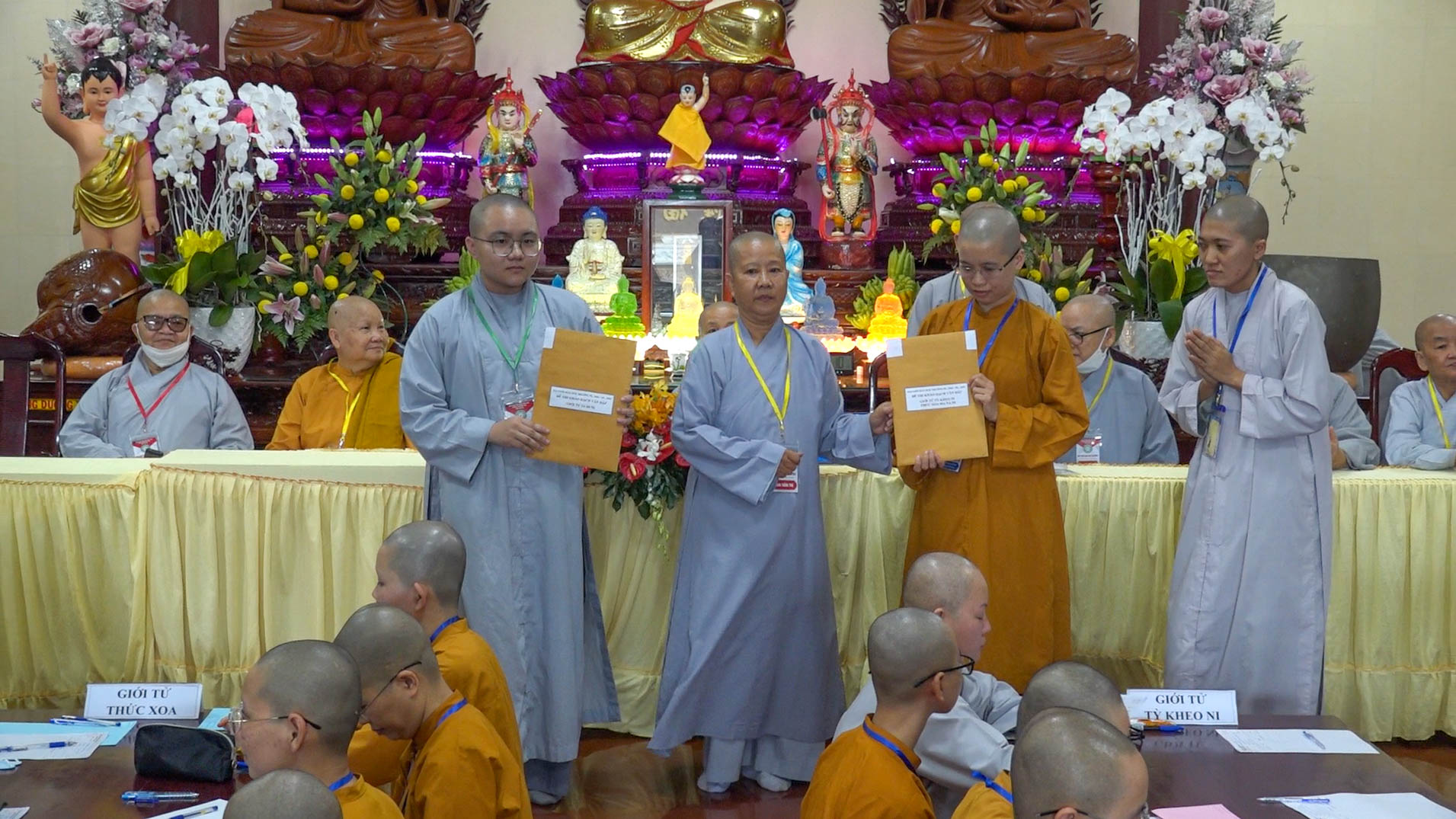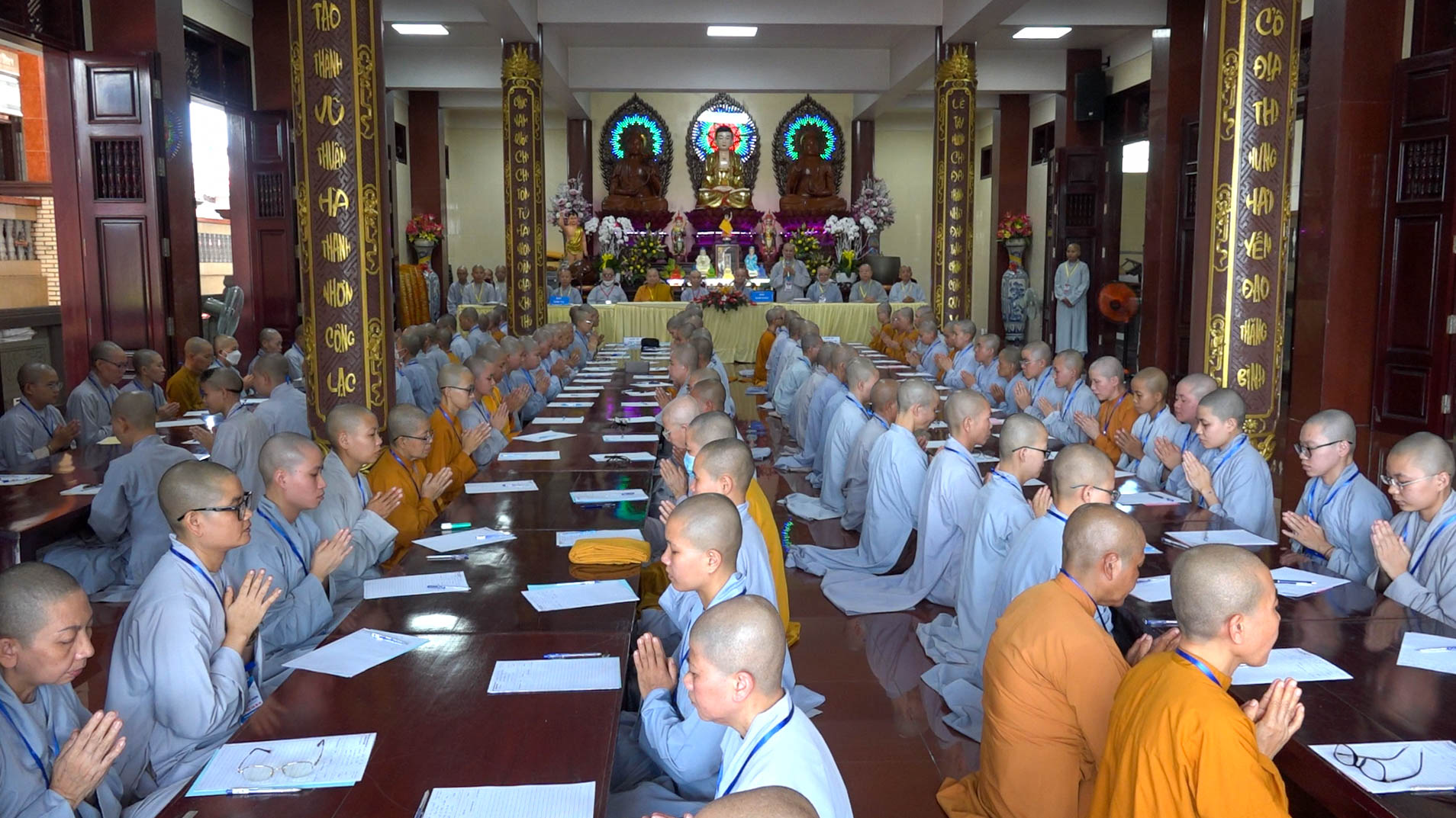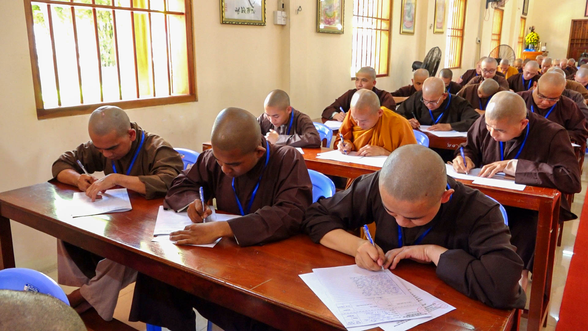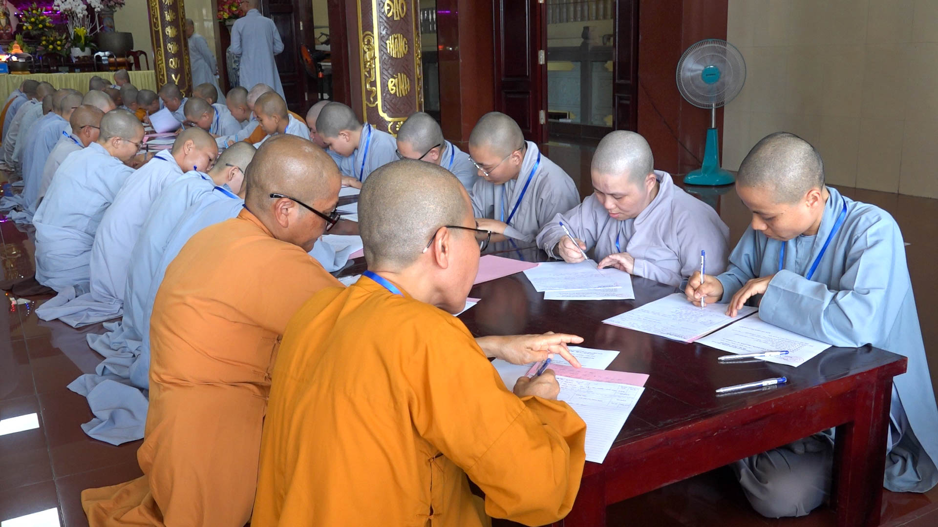 Sau đó, chư Tôn đức Ban Tổ chức Đại giới đàn đã chính thức mở đề thi và trao cho Ban Giám khảo, các giới tử bắt đầu làm bài thi trong sự giám sát chặt chẽ của Ban Giám thị. Các Giới tử đã nghiêm túc làm bài, thể hiện rõ tinh thần cần cầu giới pháp thanh tịnh.