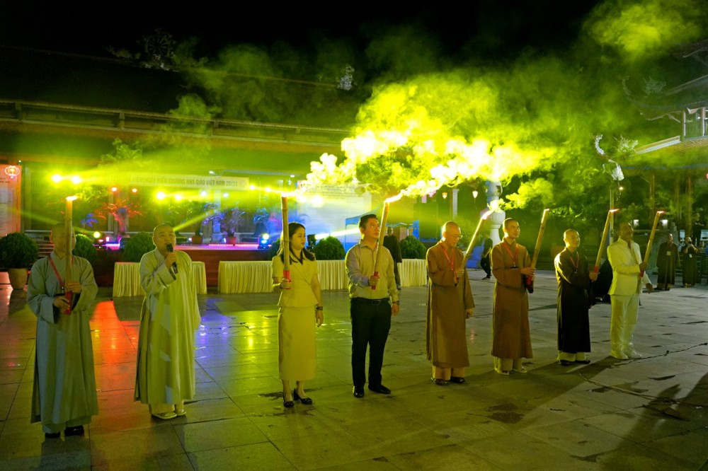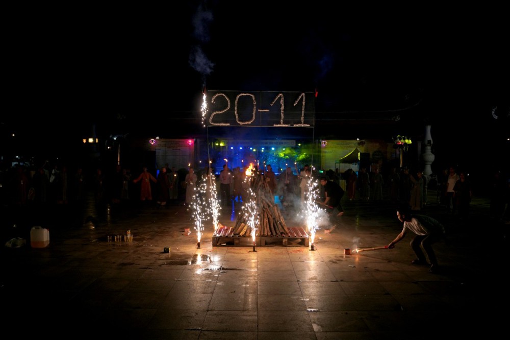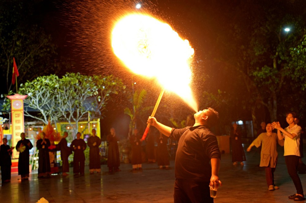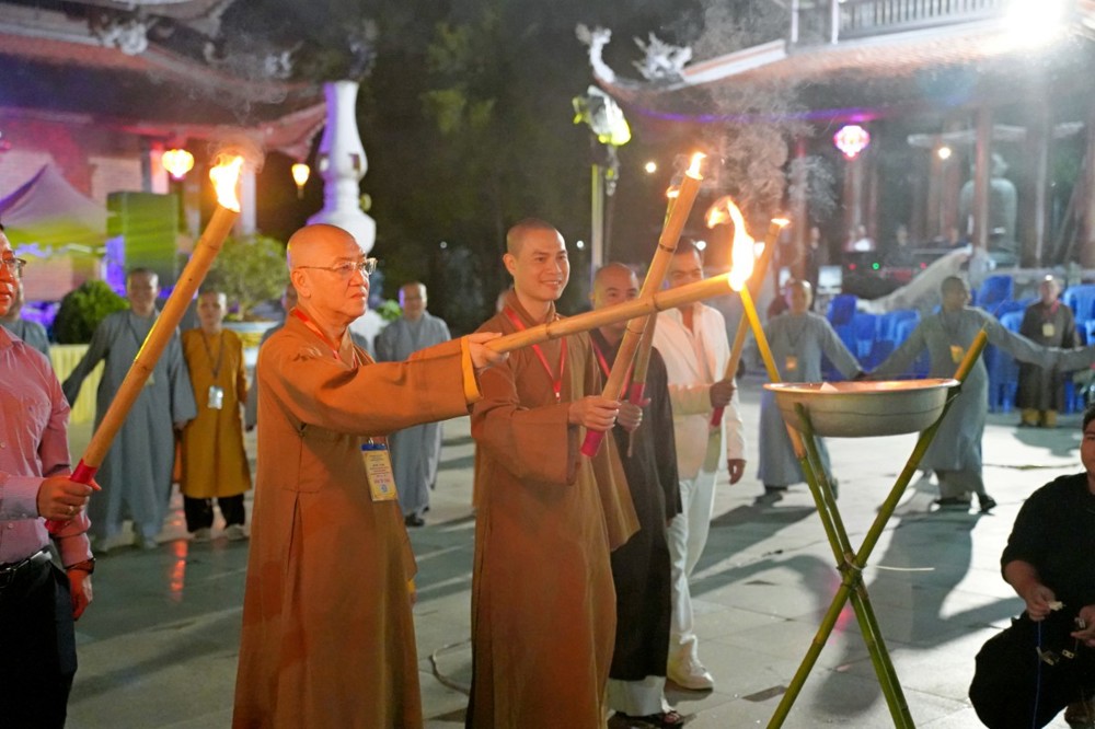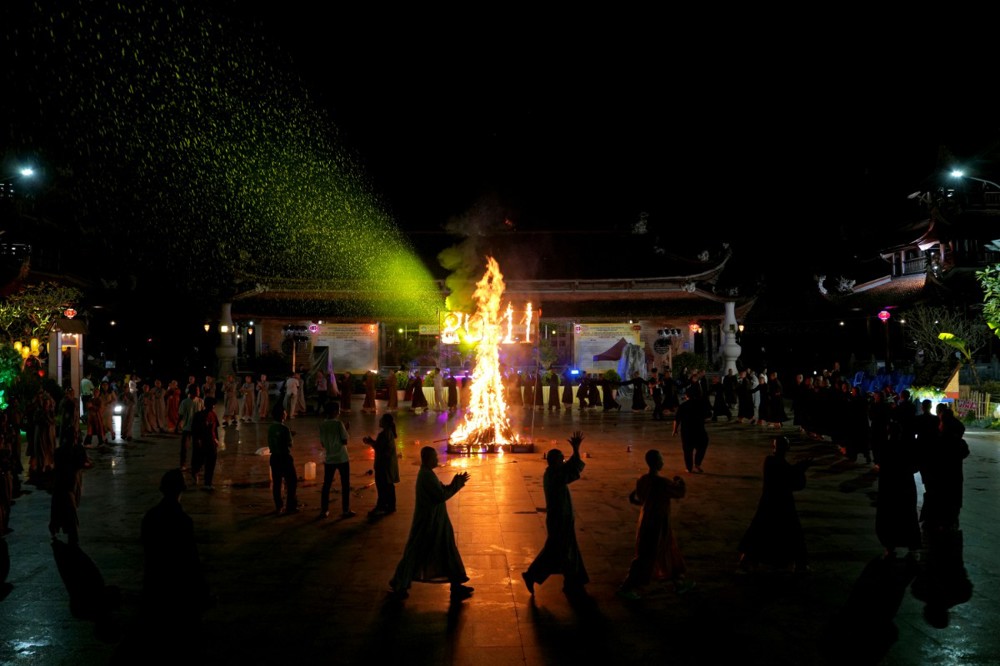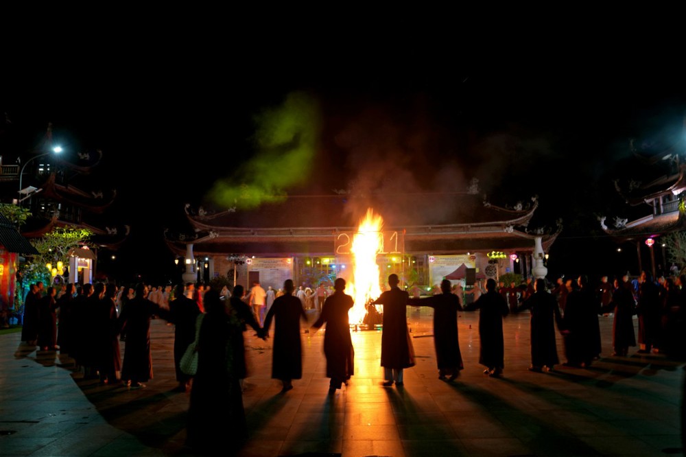 Kết thúc chương trình, chư Tôn đức, khách mời và toàn thể Tăng Ni sinh đã vân tập tại sân chùa để thực hiện nghi thức đốt lửa trại, khép lại một ngày hội trại với nhiều hoạt động ý nghĩa hướng về ngày tri ân – báo ân người thầy.