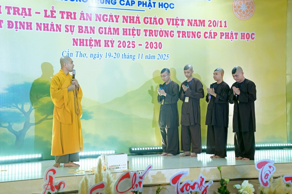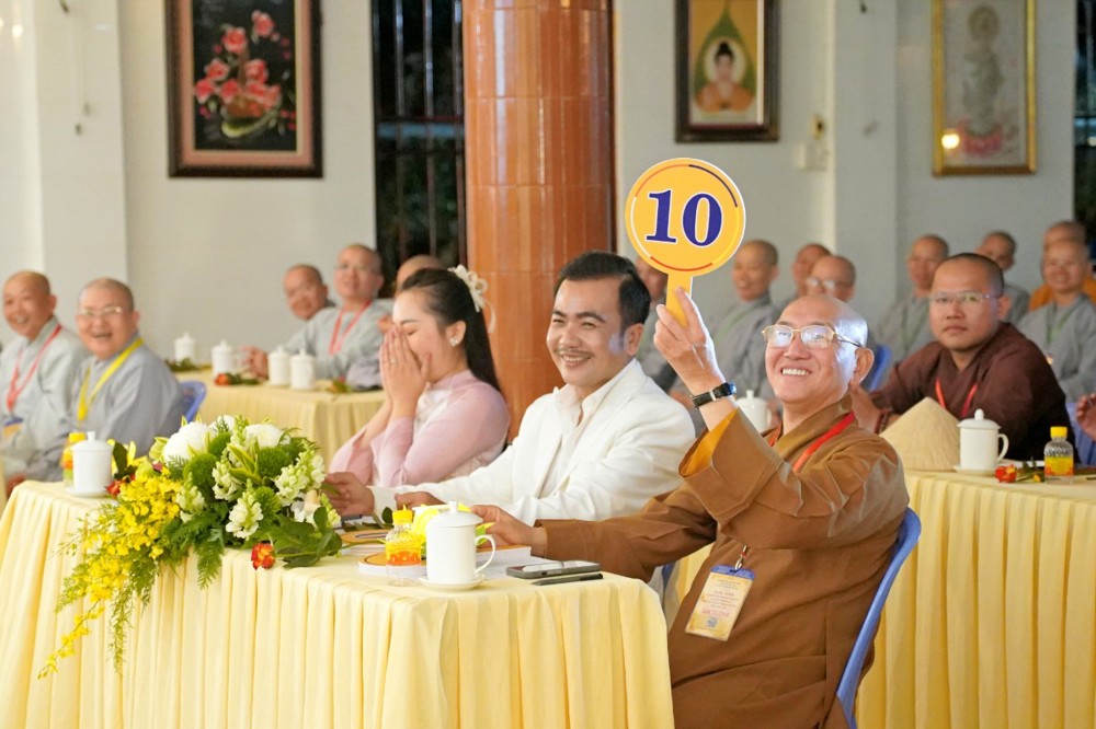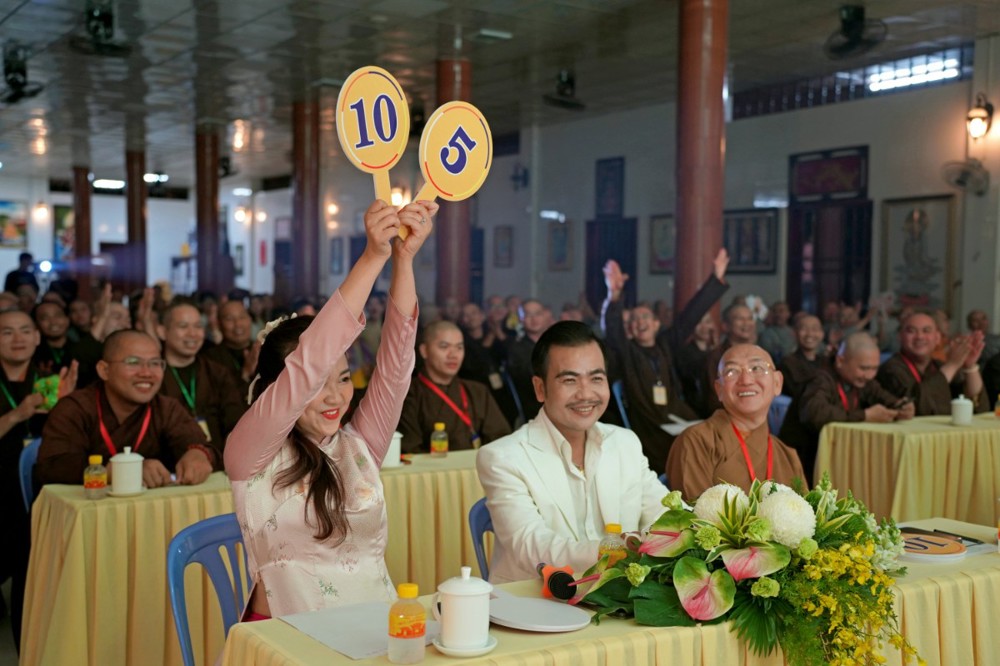 Đêm văn nghệ tri ân diễn ra trong bầu không khí ấm áp, trang nghiêm dưới sự chứng minh của TT. Thích Bình Tâm – Ủy viên Thường trực HĐTS, Phó trưởng ban Thường trực BTS GHPGVN TP. Cần Thơ, Hiệu trưởng Trường TCPH, Trưởng ban Tổ chức kiêm Trưởng ban Giám khảo. Tham dự còn có chư Tôn đức Ban Tổ chức, Ban Giám hiệu nhà trường cùng hơn 150 Tăng Ni sinh.