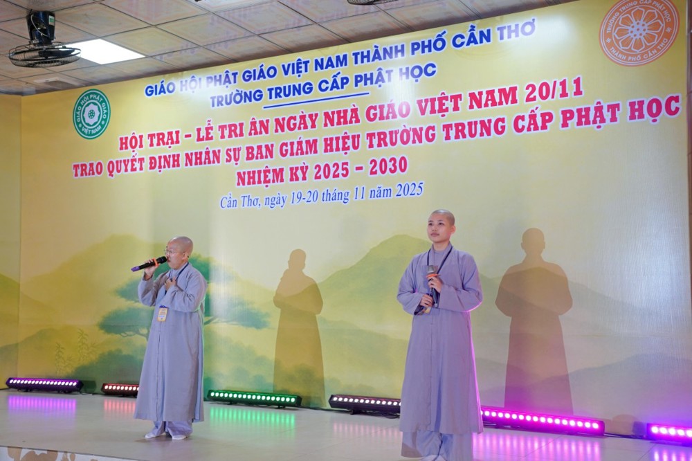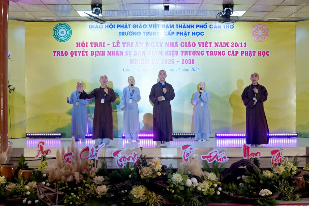 Các tiết mục biểu diễn được thể hiện với tâm thế trang nghiêm nhưng giàu cảm xúc, từ đơn ca, tốp ca, diễn xướng đến kịch sân khấu. Đặc biệt, bài vè về Trường Trung cấp Phật học Cần Thơ gây ấn tượng mạnh khi Tăng Ni sinh sử dụng ngôn từ hóm hỉnh, dễ thương để khắc hoạ chân dung từng vị Giáo thọ sư mà mình đã được học. Tiết mục mang đến tiếng cười nhẹ nhàng, tạo nên bầu không khí thân tình và thể hiện tấm lòng kính mến của học trò đối với quý thầy cô bằng cách riêng đầy sáng tạo.