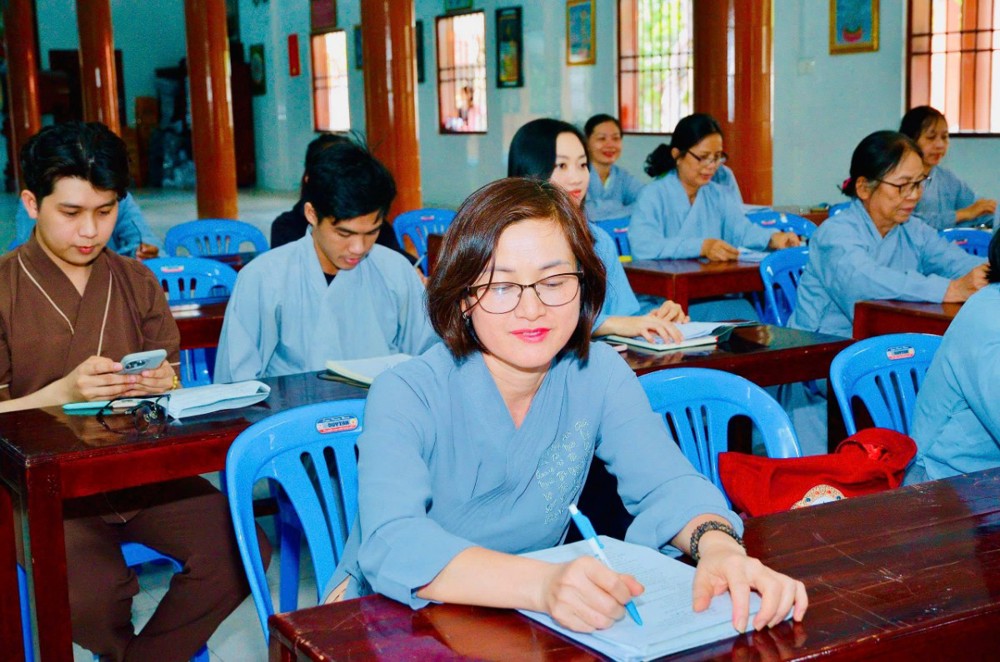 Sau phần đạo từ, Thượng toạ Hiệu trưởng đã trao đề thi. Quý học viên bước vào kỳ thi mãn khoá trong tinh thần nghiêm túc và hoan hỷ.