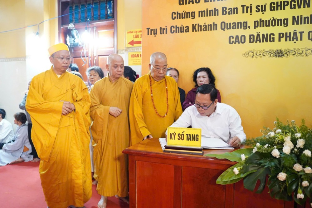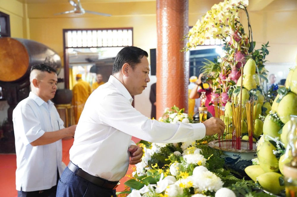 Phái đoàn do Trưởng lão Hòa thượng Tăng Nô – Phó Pháp chủ HĐCM làm trưởng đoàn. Tháp tùng đoàn còn có Hòa thượng Đào Như – Phó Chủ tịch HĐTS, Trưởng ban Trị sự GHPGVN TP. Cần Thơ; Thượng tọa Thích Bình Tâm; Thượng tọa Lý Đức – Đồng Ủy viên Thường trực HĐTS, Phó Trưởng ban Thường trực Ban Trị sự GHPGVN TP. Cần Thơ; Hòa thượng Thích Phước Thành – Ủy viên HĐTS, Phó Trưởng ban Thường trực Ban Trị sự GHPGVN TP. Cần Thơ; cùng chư Tôn đức Phó ban và Thường trực Ban Trị sự tháp tùng đoàn.
