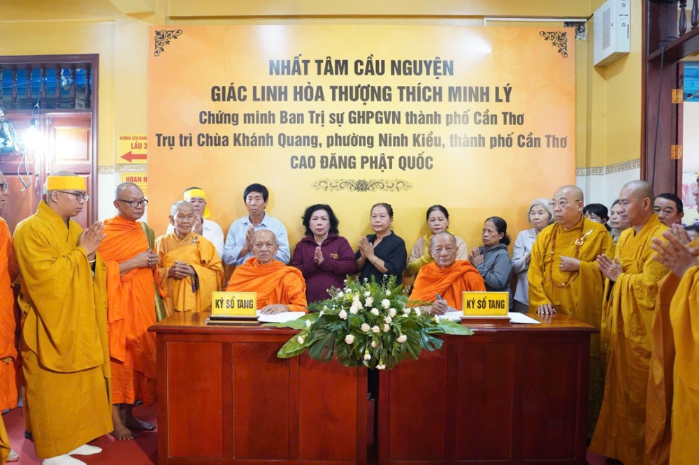 PSO - Sáng ngày 16/3/2026, tại chùa Khánh Quang (phường Ninh Kiều, TP. Cần Thơ), chư Tôn đức Hội đồng Chứng minh (HĐCM), Hội đồng Trị sự (HĐTS) Trung ương GHPGVN cùng chư Tôn đức Thường trực Ban Trị sự GHPGVN TP. Cần Thơ đã quang lâm Giác linh đường viếng tang cố Hòa thượng Thích Minh Lý, trước khi cử hành lễ truy niệm và phụng tống kim quan đi trà tỳ.