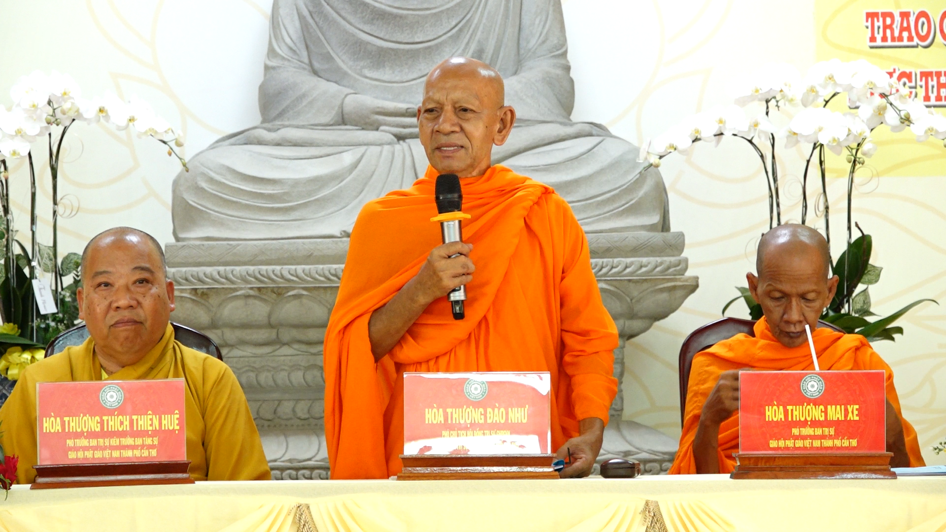 Phát biểu chỉ đạo tại Hội nghị, HT. Đào Như tán thán và đánh giá cao sự cố gắng nổ lực của toàn BTS và Tăng, Ni, Phật tử Tp. Cần Thơ, những việc làm của tất cả thành viên trong BTS Phật giáo thành phố, đã góp phần xương minh Phật pháp, phát triển Giáo hội, đem lại cuộc sống an lạc hạnh phúc cho mọi người, mọi nhà.