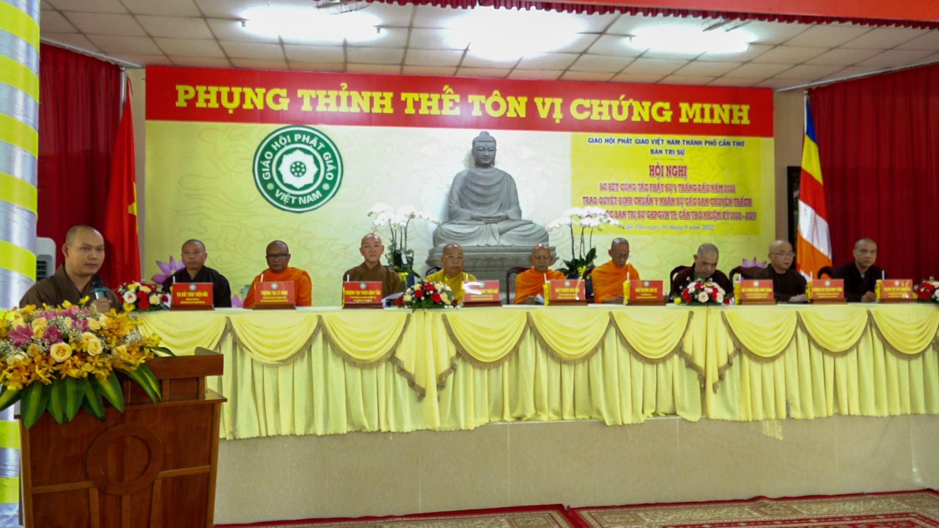 Cũng tại Hội nghị, ĐĐ. Thích Thiện Hậu – Phó Thư ký, Chánh Văn phòng Ban Trị sự kiêm Trưởng Ban Văn hóa GHPGVN thành phố tuyên đọc quyết định chuẩn y nhân sự các Ban, Phân ban trực thuộc BTS GHPGVN Tp. Cần Thơ.