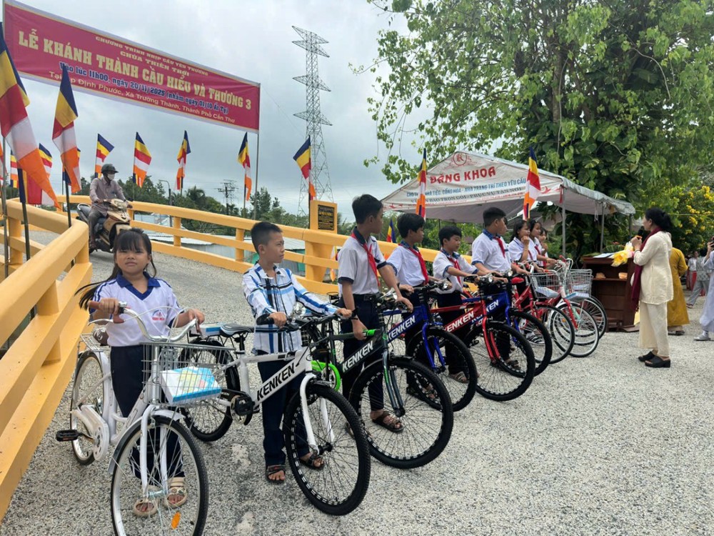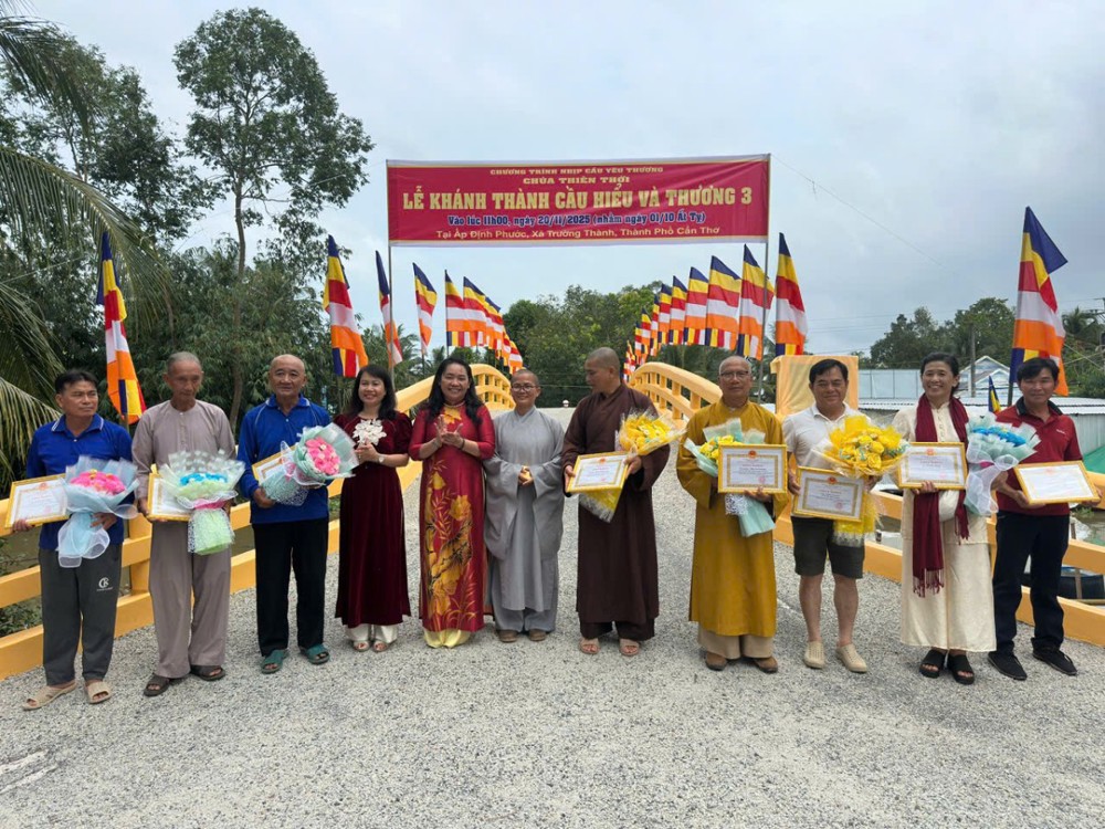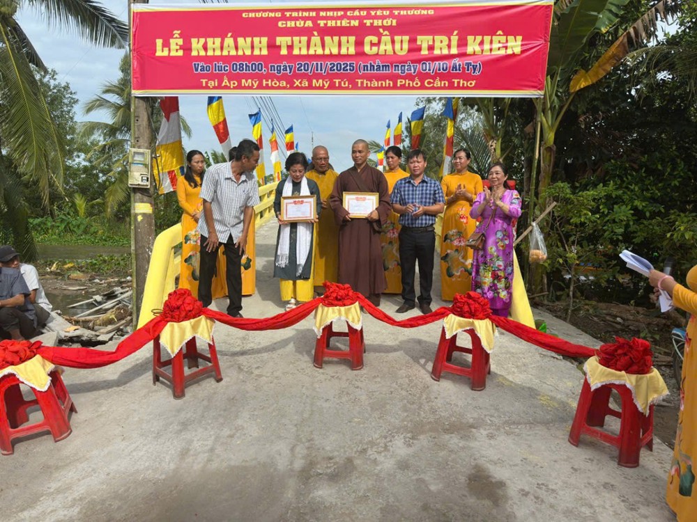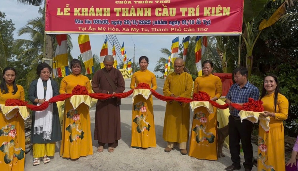 PSO - Ngày 20/11/2025 (nhằm ngày mùng 1/10 năm Ất Tỵ) HT.Thích Minh Hạnh - Trụ trì chùa Thiên Thới (xã Thới An Hội) người sáng lập "Nhịp cầu yêu thương" kết hợp cùng chính quyền địa phương, nhà tài trợ tổ chức cắt băng khánh thành 2 cầu bê tông nông thôn; đồng thời tặng quà cho bà con và học sinh với tổng giá trị hơn 1,1 tỷ đồng.