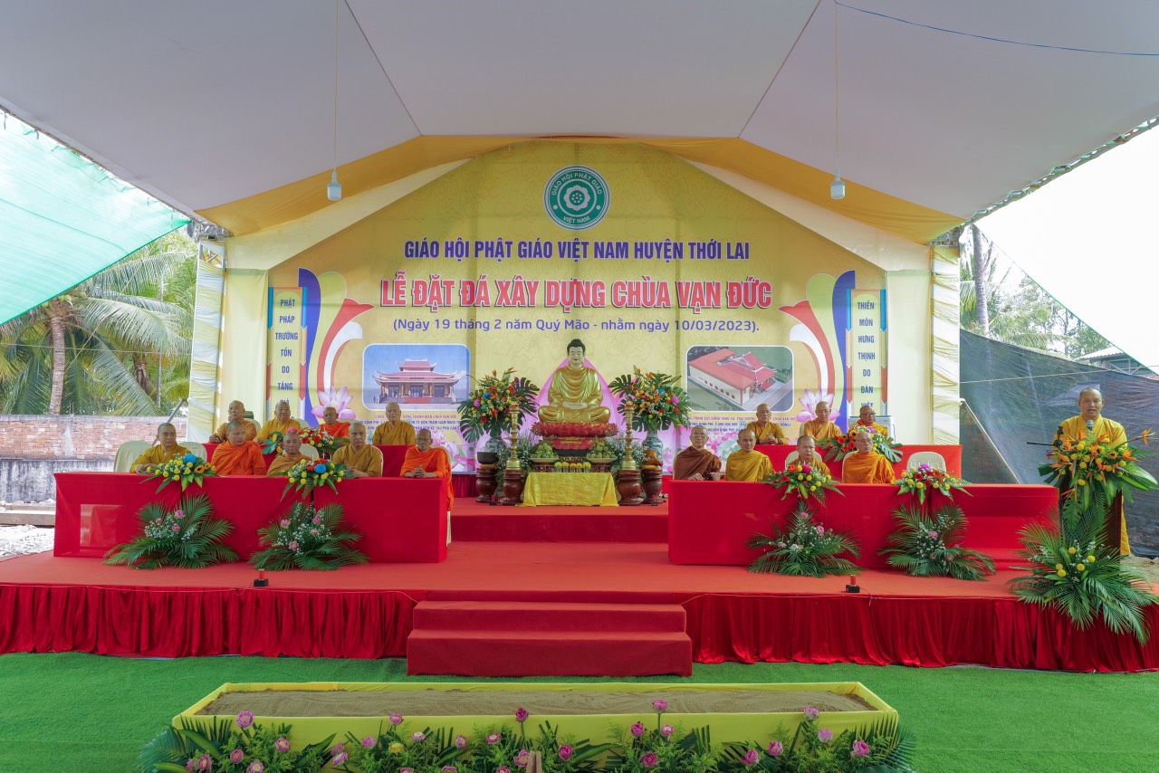 Buổi lễ được cung đón sự quang lâm, chứng minh và chủ trì nghi thức đặt đá của chư Tôn giáo phẩm Ban Thường trực Ban Trị sự Giáo hội Phật giáo Việt Nam thành phố Cần Thơ với sự hiện chứng minh tối cao của Hoà thượng Đào Như - Phó Chủ tịch Hội đồng Trị sự GHPGVN, Trưởng Ban Trị sự GHPGVN TP.Cần Thơ và chư Tôn giáo phẩm Ban Thường trực Ban Trị sự, nghi thức dâng hương đặt đá của lãnh đạo thành phố, huyện Thới Lai và địa phương sở tại.