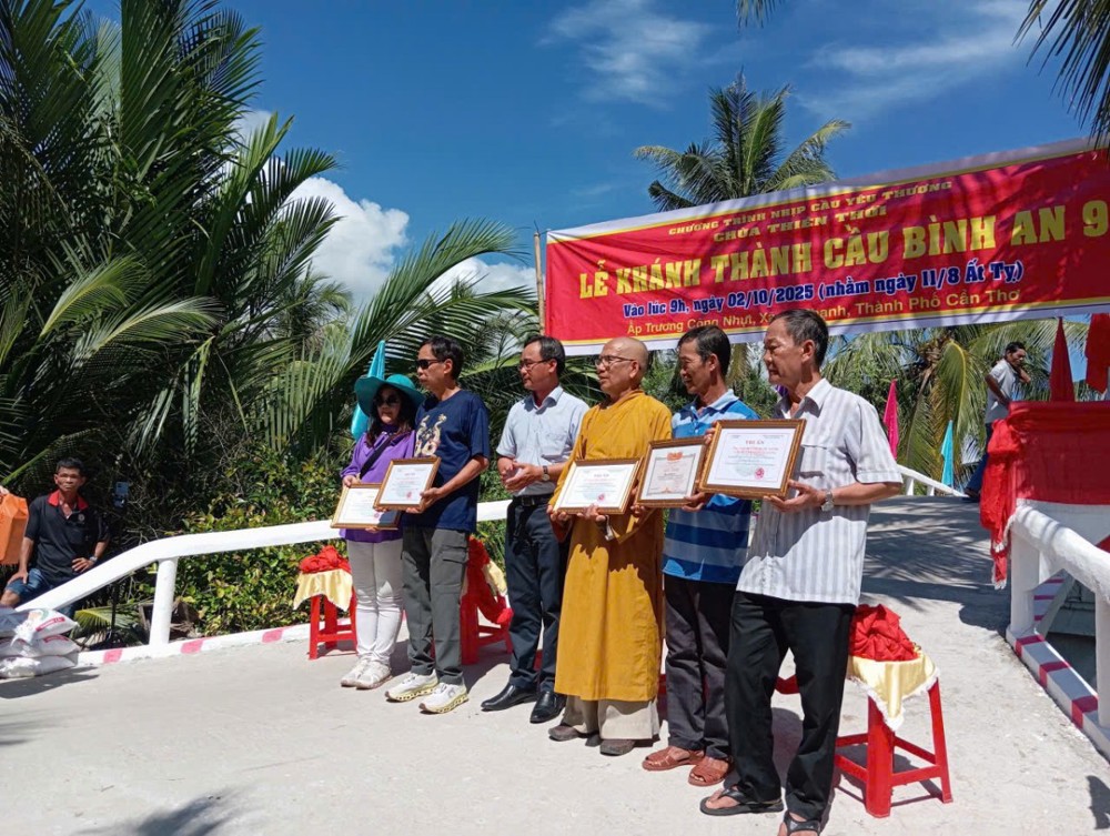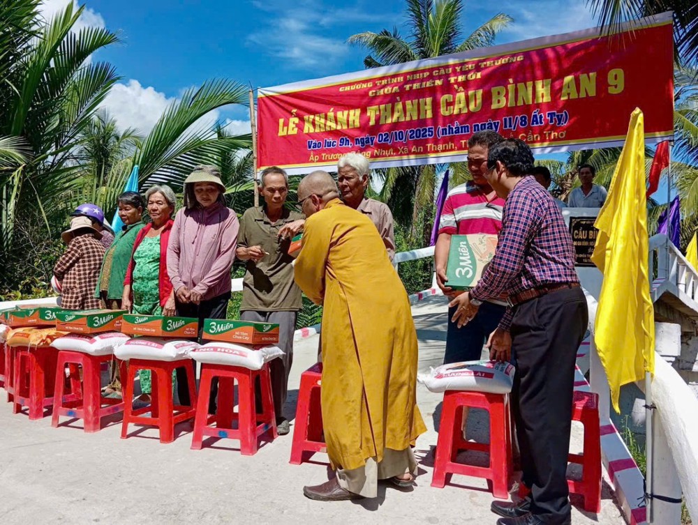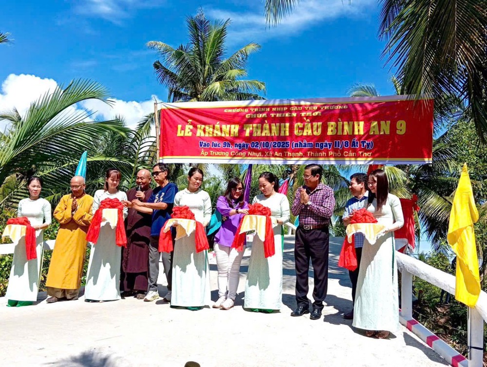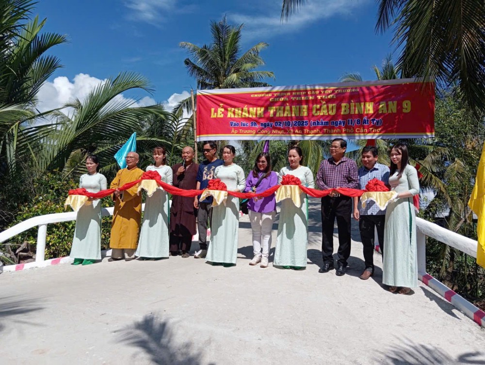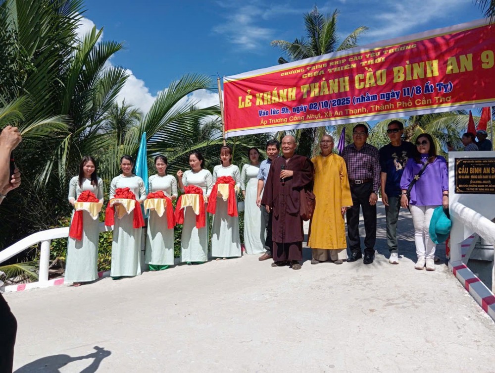 Cụ thể, ngày 02/10/2025 (nhằm ngày 11/8 năm Ất Tỵ) khánh thành cầu Bình An 9 tại ấp Trương Công Nhựt, xã An Thạnh, TP.Cần Thơ. Cầu dài 22 mét, ngang 3,5 mét được xây dựng kiên cố bằng bê tông cốt sắt, tải trọng trên 2 tấn. Cầu này chùa Thường Quang (TP.HCM) giới thiệu, gia đình Hoàng Quốc Oanh và Quỳnh Dao (Hoa kỳ) tài trợ kinh phí vật tư. Trị giá chung của cầu là 240 triệu đồng.
