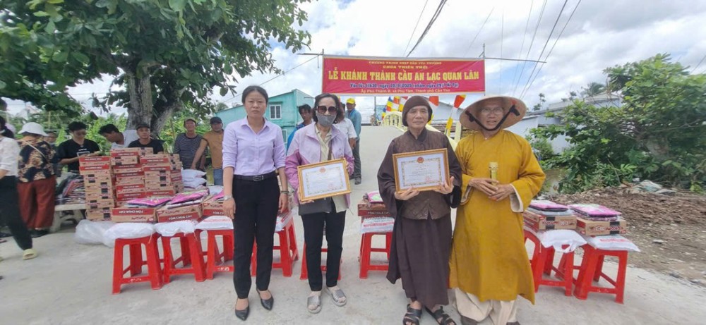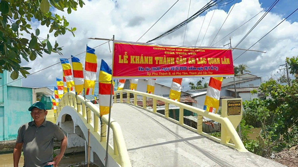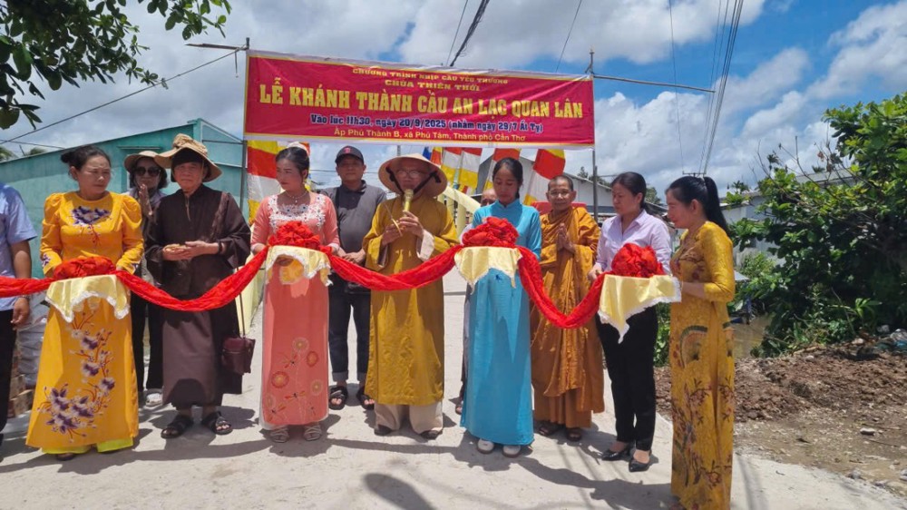 Trước đó, ngày 20/9/2025 (nhằm ngày 29/9 năm Ất Tỵ) cắt băng thông cầu, đưa vào sử dụng cầu An Lạc Quan Lân tại ấp Phước Lợi, xã Thuận Hoà, TP.Cần Thơ. Cầu này này 23 mét, rộng 3,1 mét. Cầu có cấu trúc kiên cố, tải trọng trên 2 tấn. Quý Phật tử chùa An Lạc (TP.HCM) ủng hộ kinh phí vật tư, trị giá chung của cầu là 200 triệu đồng.