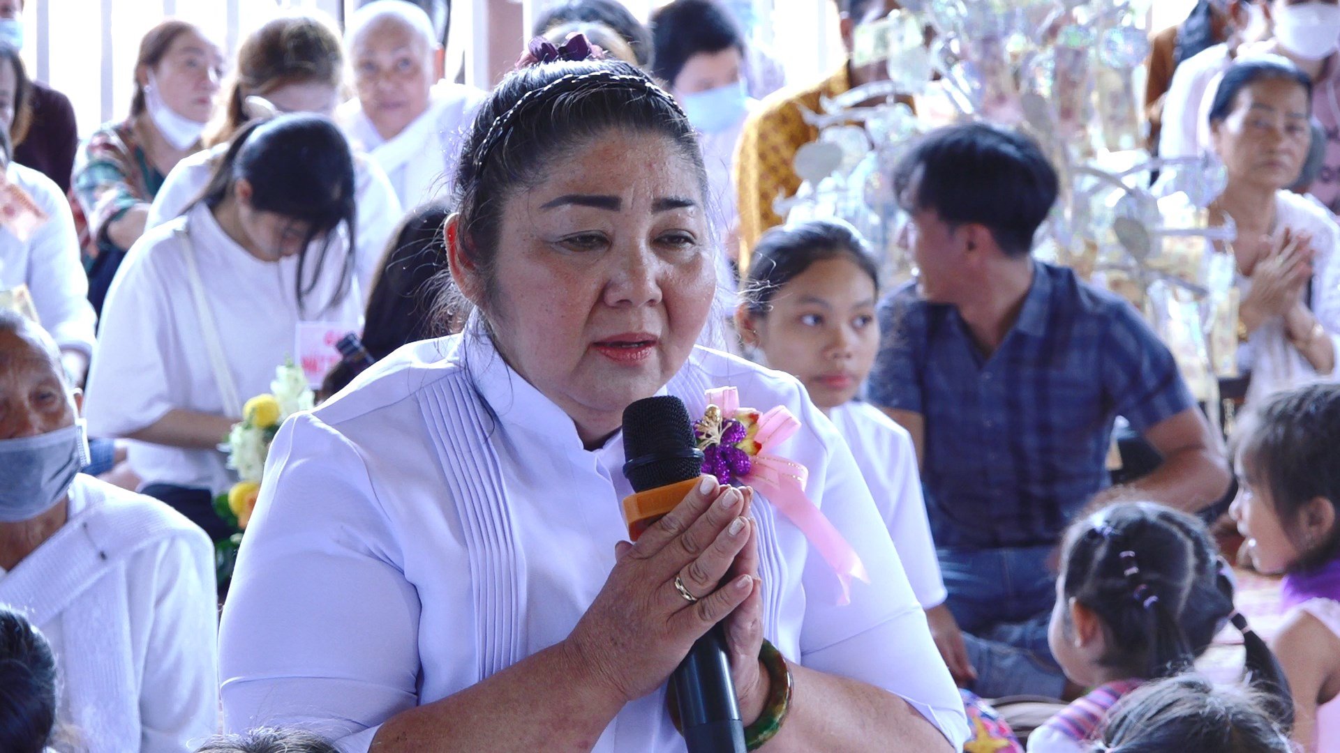 Ban đạo từ tại buổi lễ HT.Đào Như tri ân, tán thán gia đình các tín chủ đã vân tập về đây để dự lễ dâng y và cúng dường lên chư Tôn đức. Đồng thời các tín chủ còn nguyện đem công đức cúng dường này hồi hướng đến những anh linh tử nạn, đồng bào tử vong vì Covid, đó là một việc làm thật lành thay. Nay chư Tăng thọ nhận vật phẩm cúng dường này và nguyện cầu chư thiên, chư Phật gia hộ cho quý vị luôn được 5 phước báu của đức Phật “Sống lâu, Sắc đẹp, An vui, Sức mạnh và Trí tuệ”