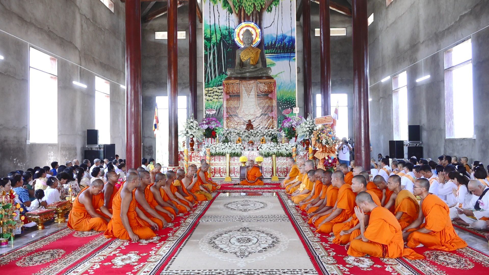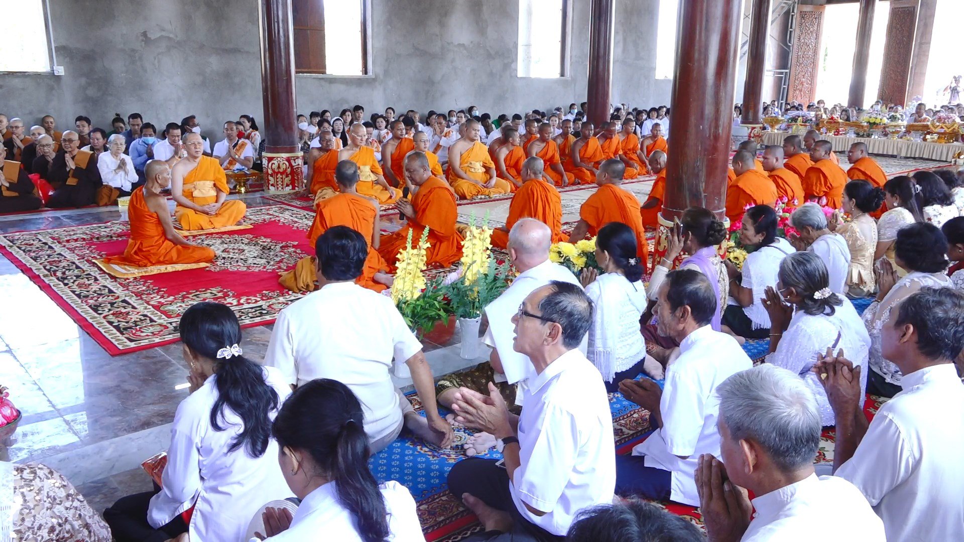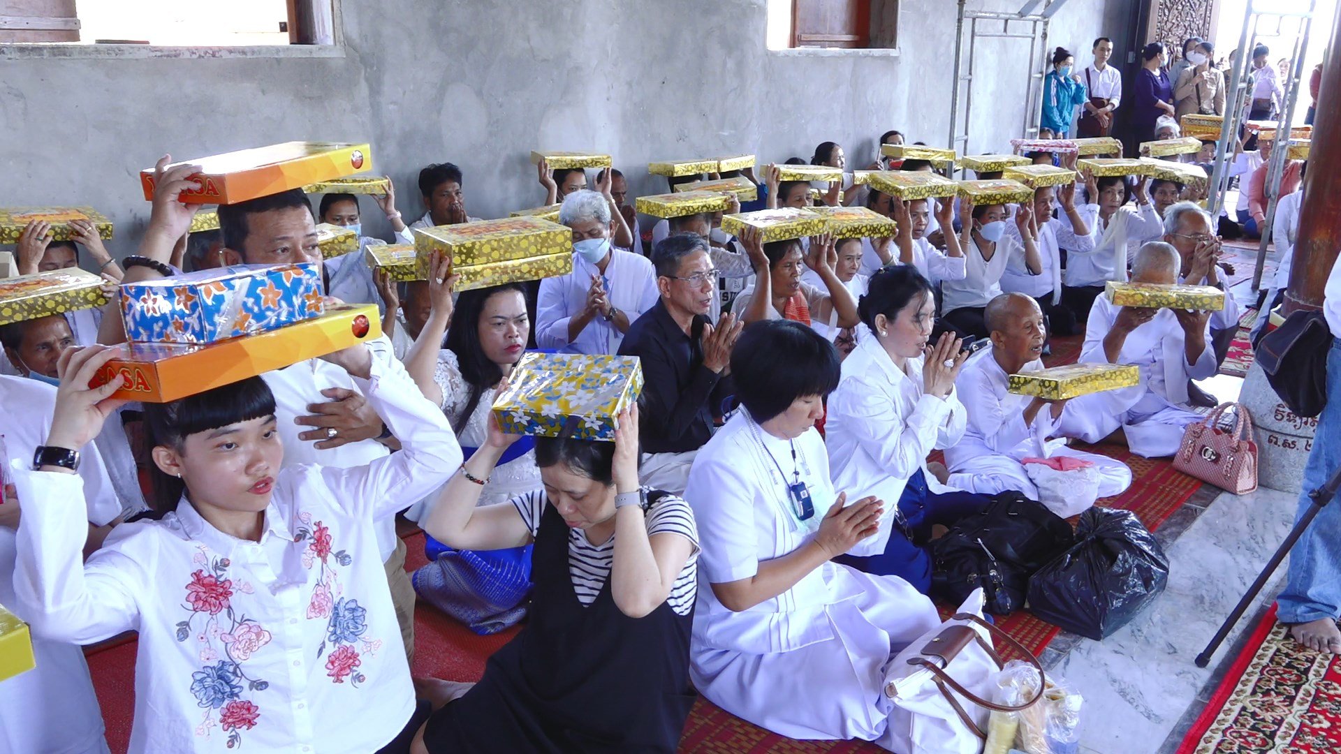 Cuối buổi lễ chư Tôn đức, Achar cùng quý Phật tử tụng thời kinh theo nghi thức của hệ phái Nam tông và dâng y, tứ sự cúng dường chư Tôn đức.