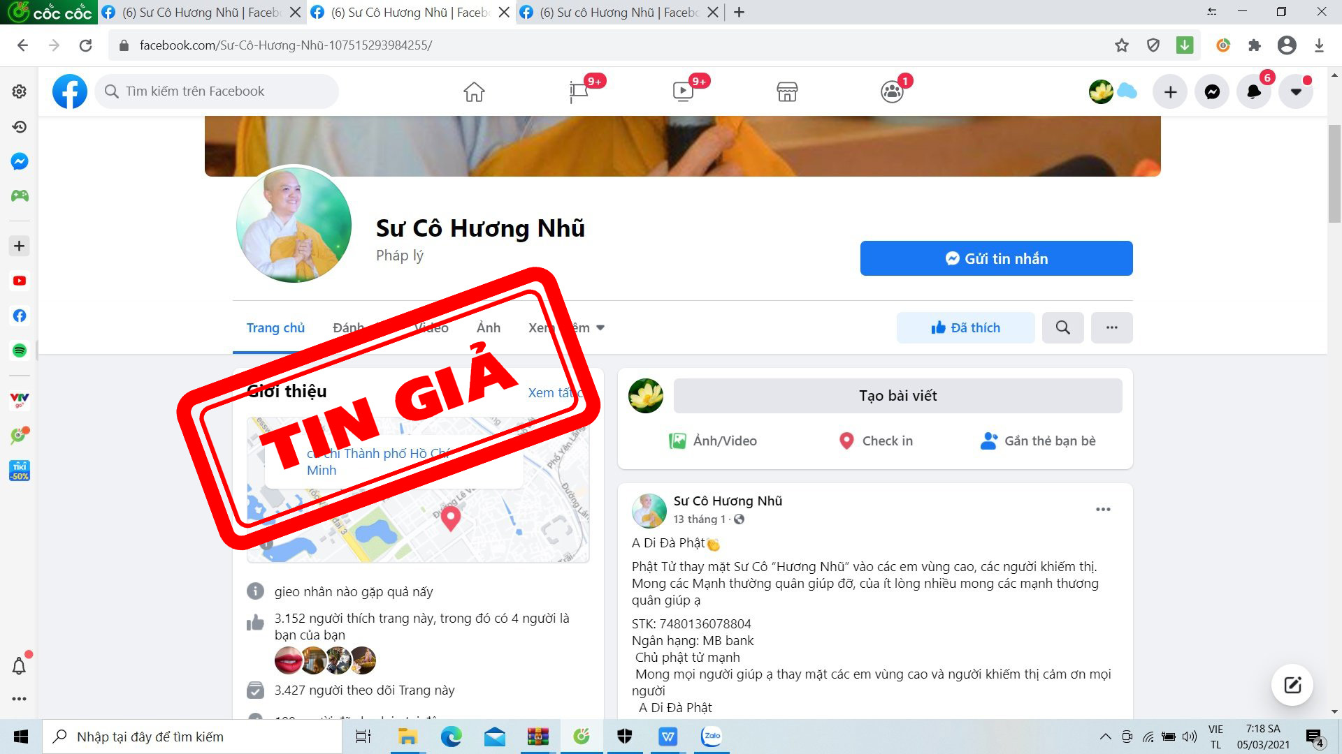 Các Tài khoản giả mạo, lừa đảo trục lợi cá nhânNi Sư Hương Nhũ cho biết, bản thân Ni sư cũng như chùa Thiên Quang không có bất kỳ một sự kêu gọi, vận động từ thiện nào trên mạng xã hội. Mong quý vị cảnh giác với những thông tin thất thiệt nhằm quyên góp để lừa đảo cộng đồng thông qua các phương tiện truyền thông.