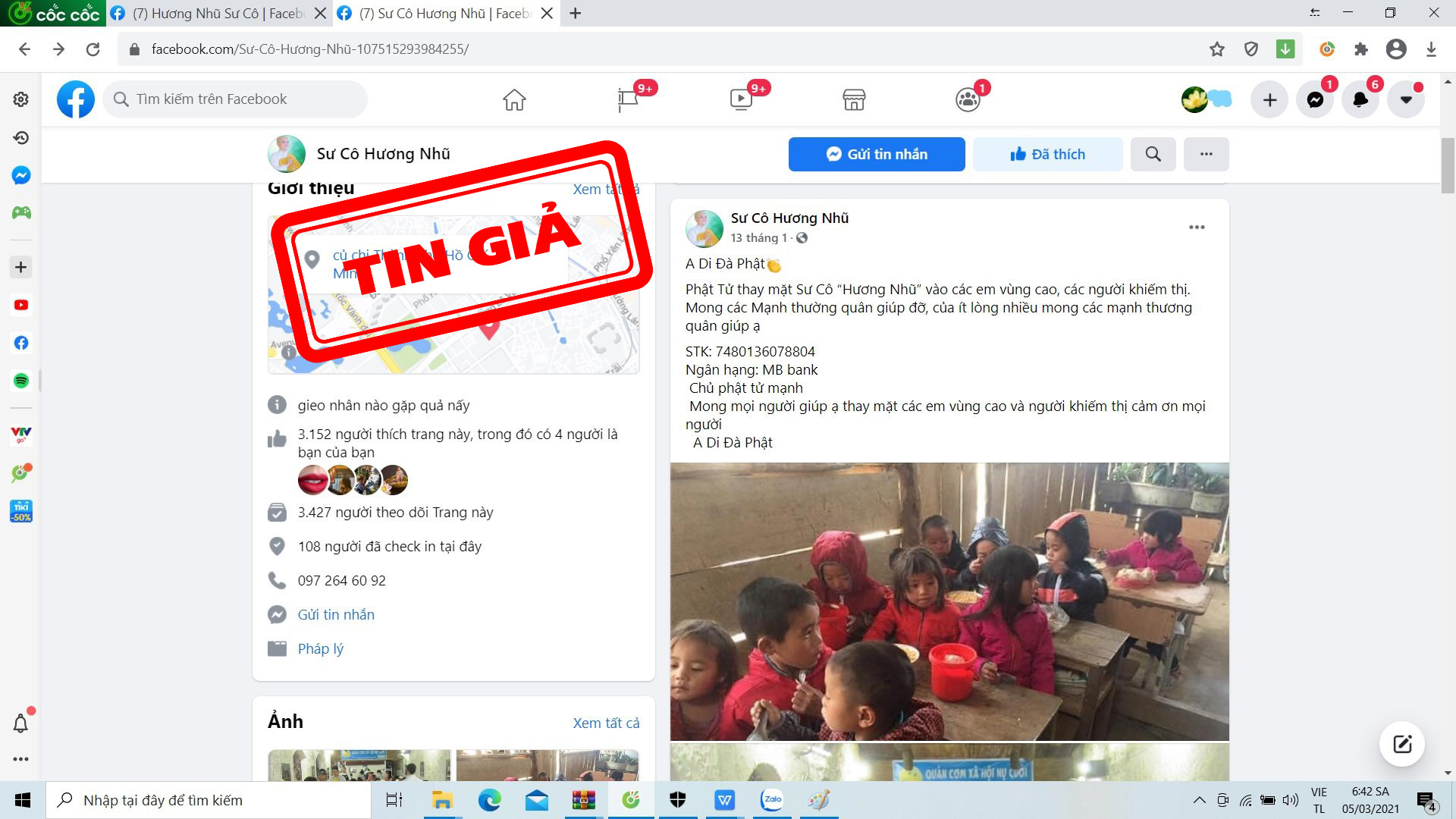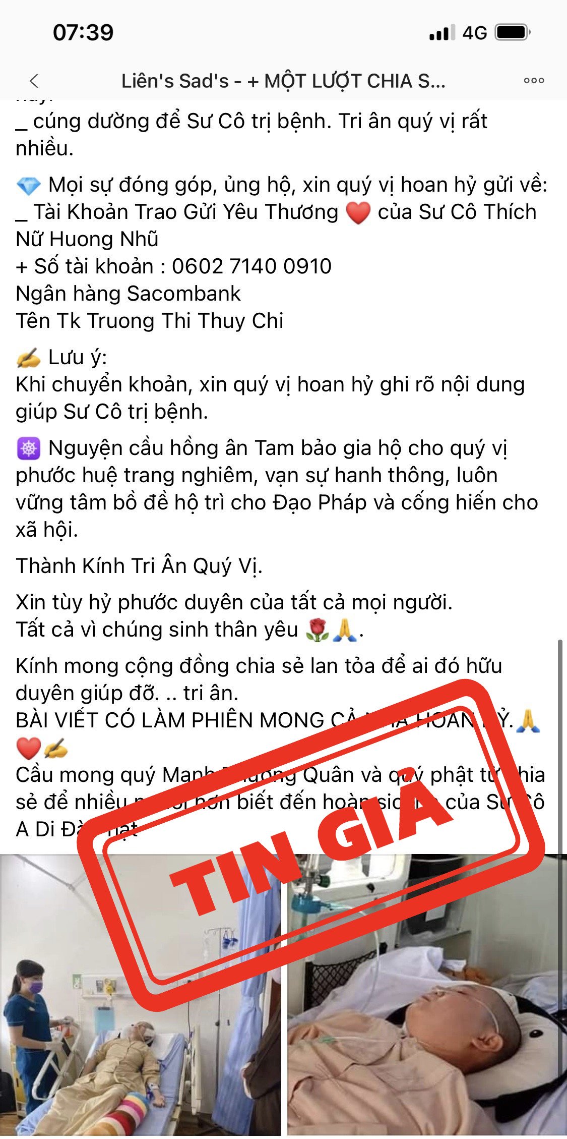 Facebook giả mạo Sư Hương Nhũ kêu gọi từ thiện