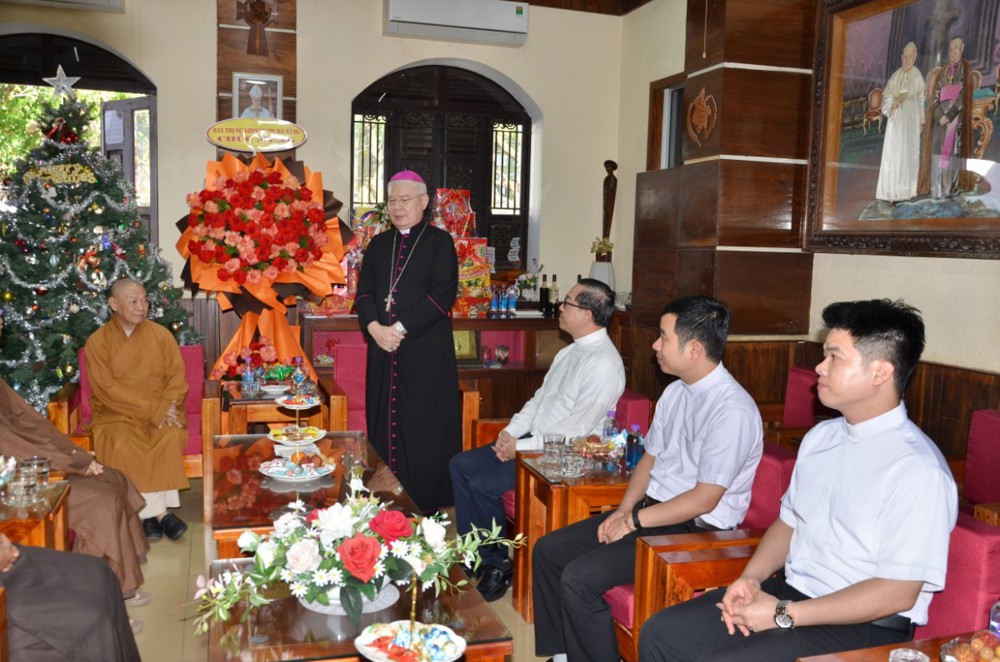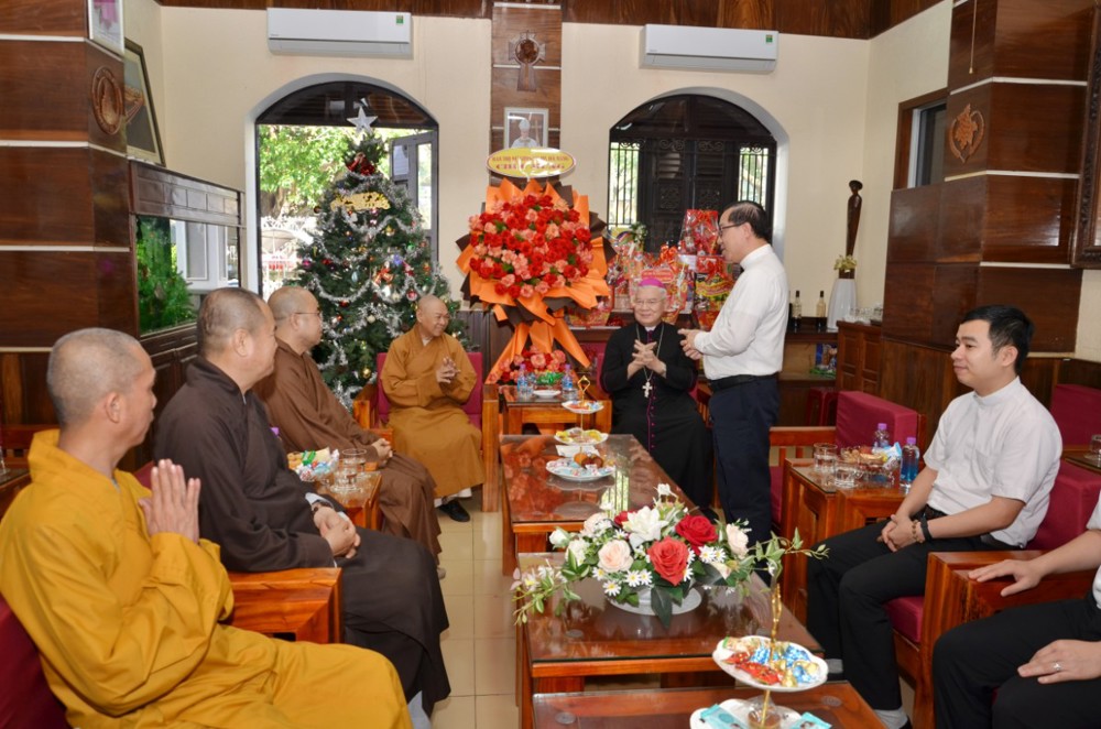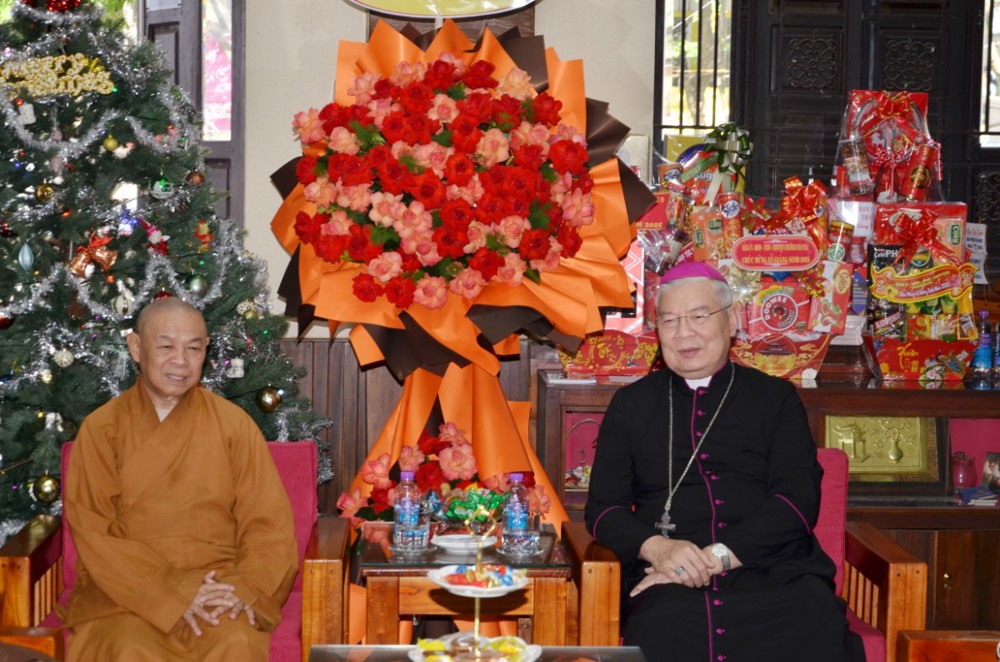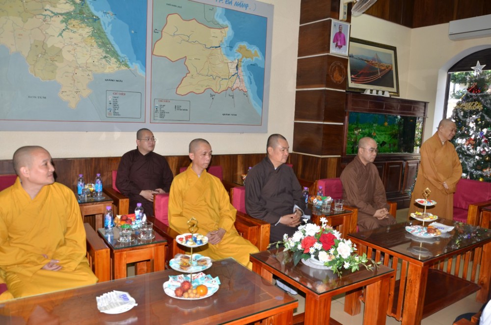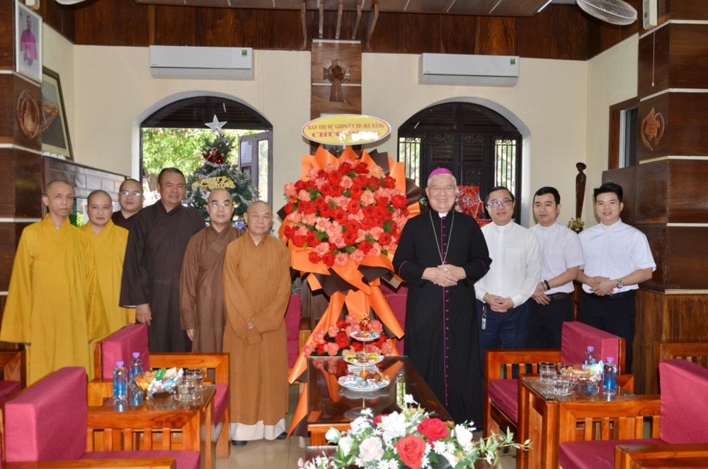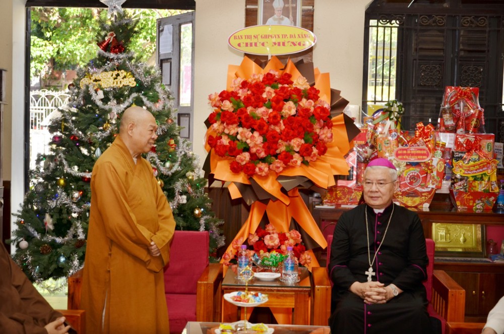 Thay mặt đoàn Ban Trị sự GHPGVN thành phố, Hoà thượng Thích Từ Nghiêm thăm hỏi sức khỏe và chúc mừng ngài Tổng Giám mục Giuse Đặng Đức Ngân, các linh mục, nữ tu cùng toàn thể tín hữu Thiên chúa giáo tại thành phố Đà Nẵng một mùa Giáng sinh cùng năm mới an lành và hạnh phúc.