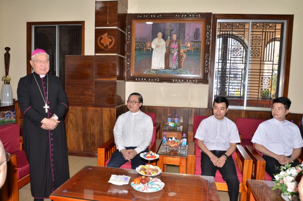 Tiếp đoàn có Tổng Giám mục Giuse Đặng Đức Ngân - Tổng Giám mục Tổng Giáo phận Huế kiêm Giám quản Tông toà Giáo phận Đà Nẵng cùng các Linh mục của Tông toà Giám mục.