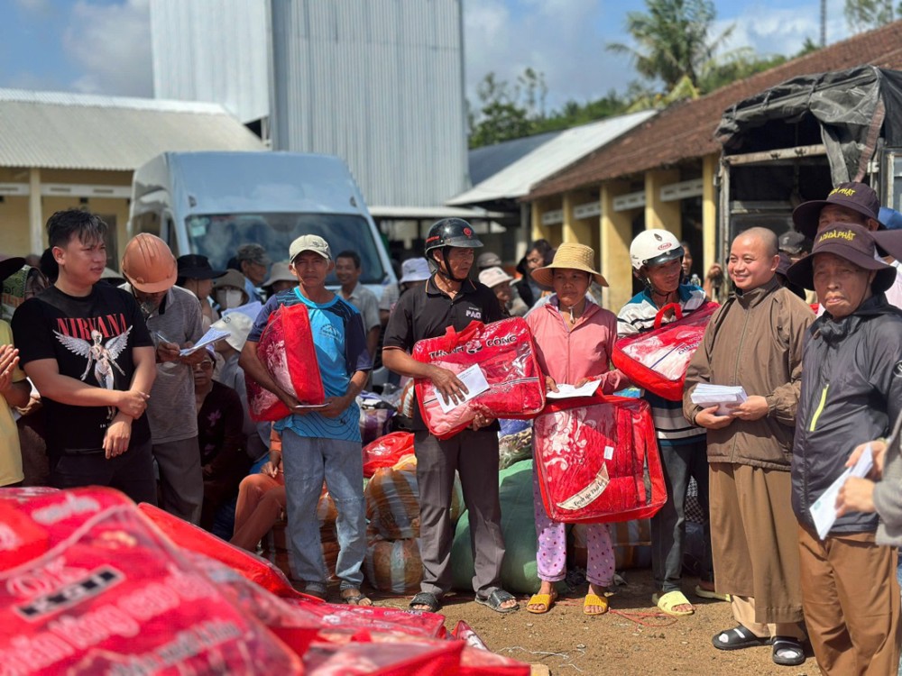 Với tinh thần từ Bi của những người con Phật, với tấm lòng sẻ chia của người dân Việt, trong 2 ngày 05 và 06 tháng 12 năm 2025 (nhằm ngày 16 tháng 10 năm Ất Tỵ), Đại đức Thích Quảng Tuệ - Tri sự chùa Trung Lương, Đại đức Thích Quảng Thành – Trú xứ chùa Minh Phước, Đại đức Thích Quảng Pháp – Trú xứ chùa Kim Sơn, Đại đức Thích Tịnh Nghĩa – Đạo tràng Tăng Viên và Sư cô Thích Nữ Huệ Phúc – Đạo tràng Phước Trí cùng phối hợp hướng dẫn Phật tử đến xã Tuy An Tây, tỉnh Đăk Lăk (tỉnh Phú Yên cũ) thăm, động viên và trao tặng 400 suất quà, mỗi suất gồm chăn ấm, nước uống, nhu yếu phẩm và 500.000đ. Đoàn cũng đã đến thăm và trao tặng những hộ có người mất, bị hư hại nhà cửa mỗi hộ 3 triệu đồng.