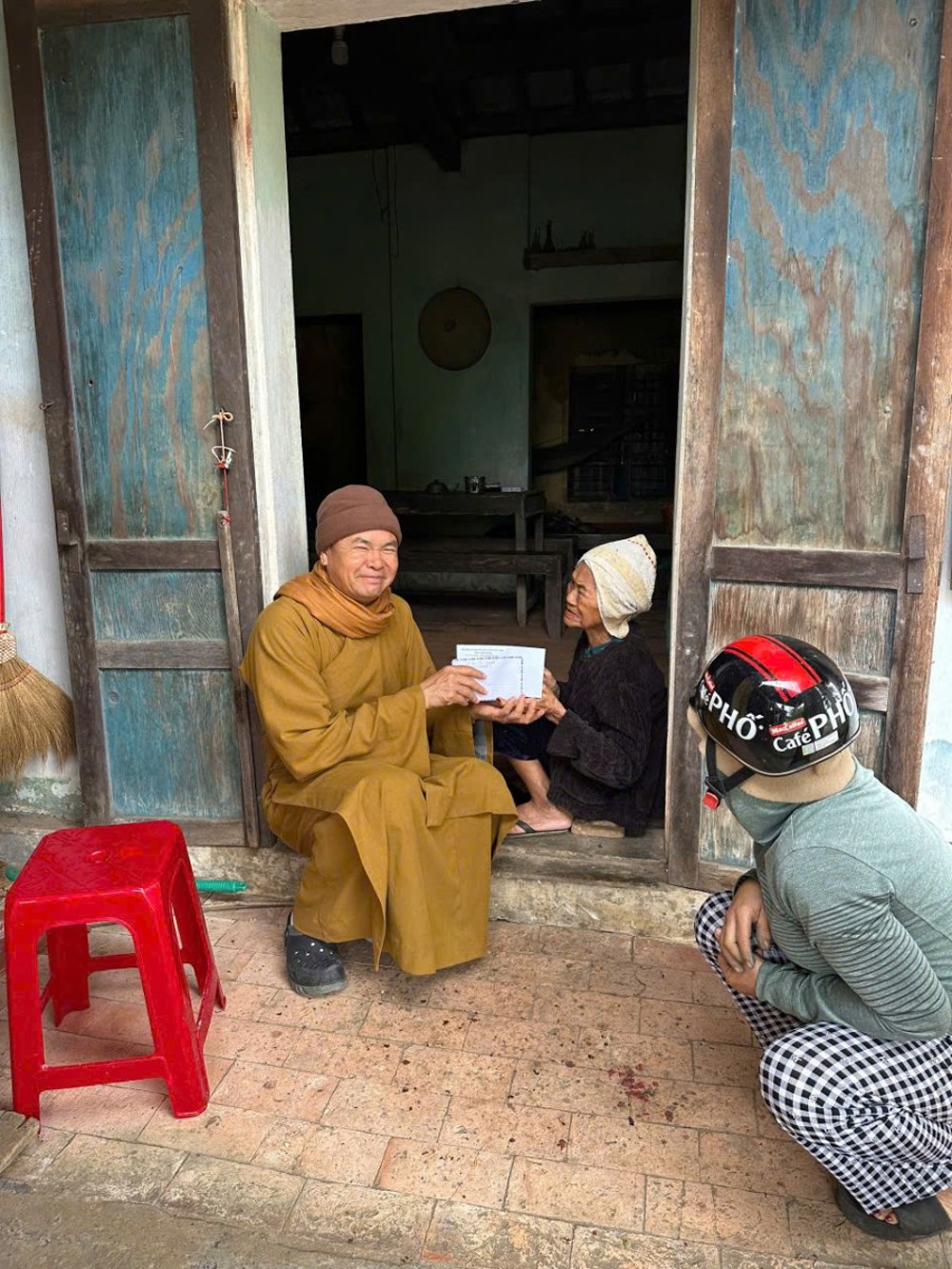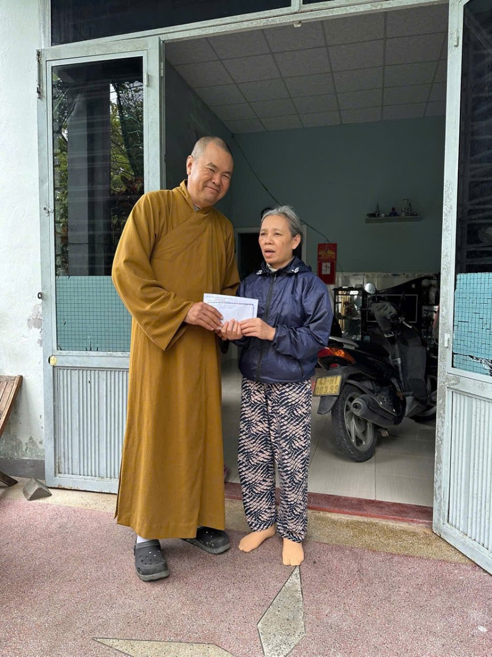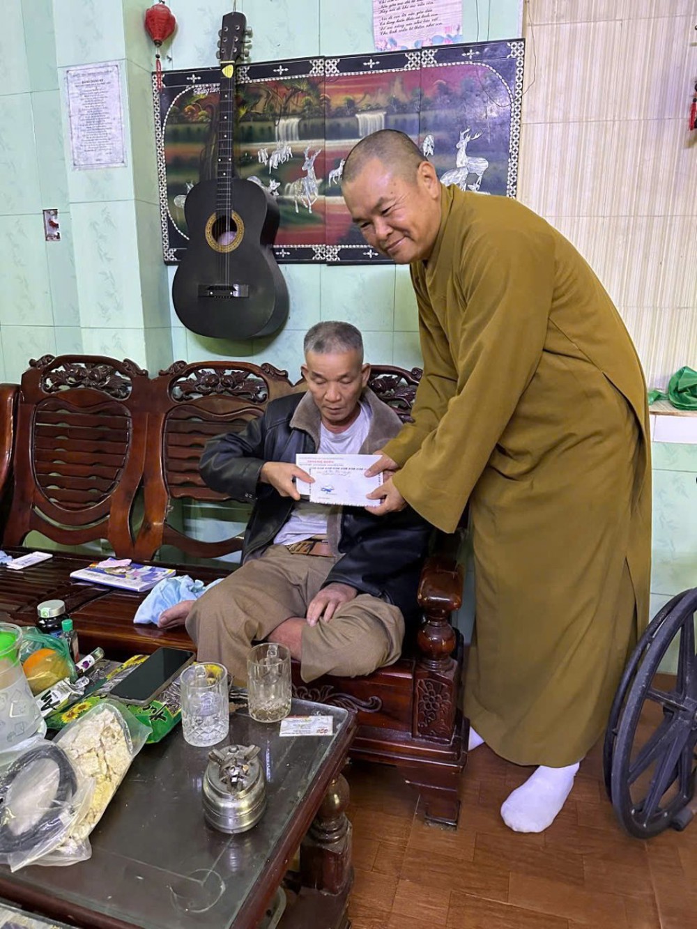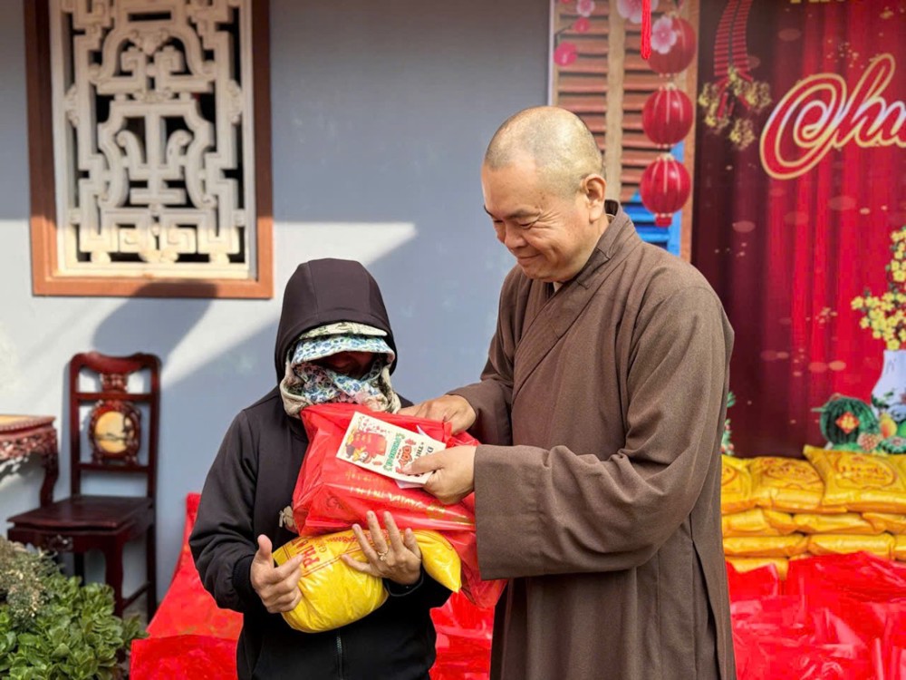 Trước đó, Thượng tọa Thích Pháp Châu đã đến tận nhà 14 hoàn cảnh bị bệnh hiểm nghèo khó khăn để thăm hỏi, động viên và trao tặng quà tết cho bà con.