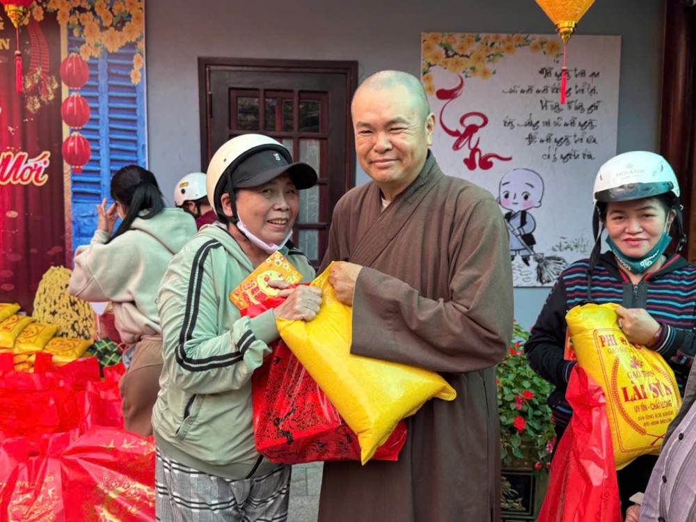 Thượng tọa Thích Pháp Châu - Phó trưởng ban Ban Trị sự, Trưởng Ban hướng dẫn Phật tử GHPGVN Tp Đà Nẵng, Trú trì chùa Huệ Quang cùng Tăng chúng, Phật tử tại bổn tự đã trao tặng 100 suất quà tết cho bà con có hoàn cảnh khó khăn tại địa phương.