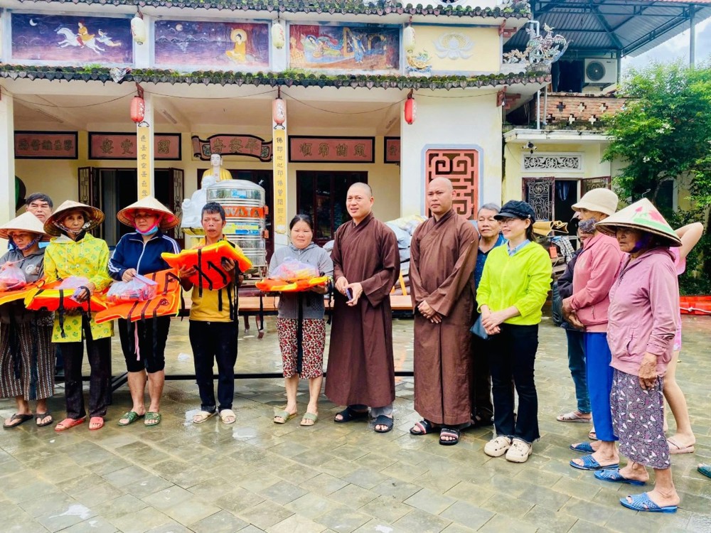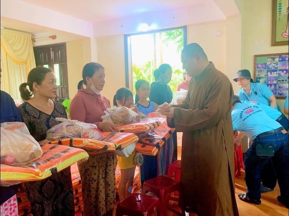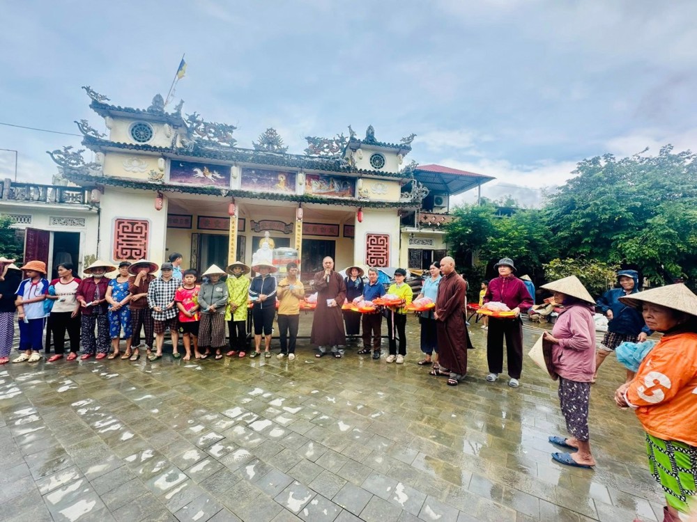Trong suốt những ngày nước lũ còn dâng cao cho đến khi nước rút, Chư Tăng chùa Pháp Hội cùng chúng Hộ Pháp, Doanh nghiệp tư nhân Tuyết Ân, nhóm từ thiện Tố Quyên, nhóm từ thiện Hoàng Anh đã liên tịc nấu hang tram suất cơm chay, trao tặng gần 1.000 phần quà bao gồm áo phao, nhu yếu phẩm và tịnh tài đến bà con làng Cà Tang, xóm Bún, Đại Bình, Nông Sơn, Khánh Bình, Phú Đa thuộc tỉnh Quảng Nam cũ với tổng kinh phí hơn 400 triệu đồng.