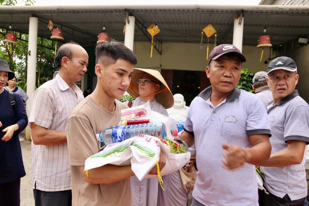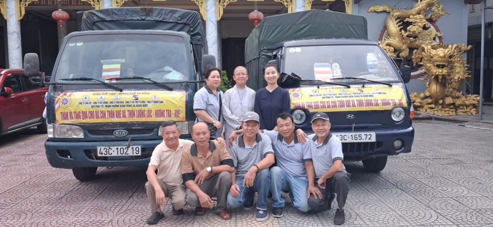 Không chỉ hỗ trợ bà con, với tình môn sơn pháp lữ, đoàn đã đến đảnh lễ và cúng dường Tam Bảo tại các ngôi chùa bị ngập lụt như chùa Khê xá, chùa Phước Lộc, Tịnh Thất Từ Tâm, chùa An Môn, chùa lương Điền, chùa Hồng Ân.
