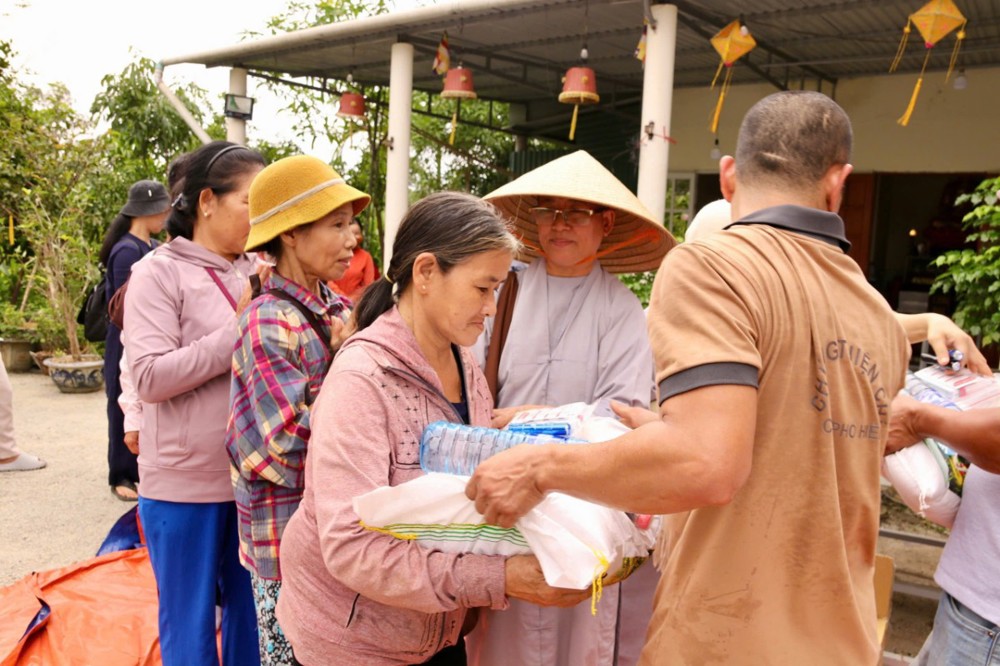 PSO – Với tấm lòng Từ Bi của những người con Phật, với tinh thần thấu hiểu và sẻ chia, ngay khi miền Trung đang còn chìm trong biển nước bởi trận lũ lụt lịch sử, Ni sư Thích Nữ Minh Hiền - ủy viên Thường trực Ban Trị sự GHPGVN Tp Đà Nẵng, Trú trì chùa Phổ Hiền (02 Trần Huy Liệu, phường Hòa Cường, Tp Đà Nẵng) cùng Ni chúng, Phật tử đã lập tức có mặt tiếp tế lương thực, thực phẩm cứu trợ bà con đang bị cô lập bởi nước lũ.
