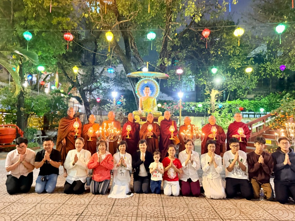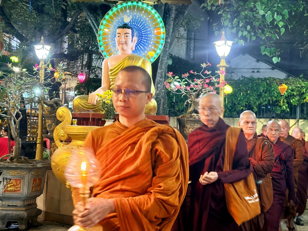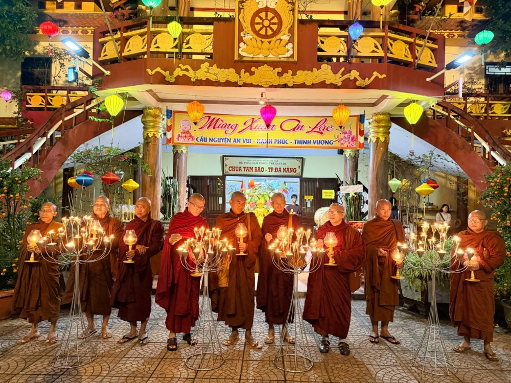 Cuộc hội ngộ này không chỉ là một nghi lễ tôn giáo đơn thuần mà là minh chứng cho sức hút của Đà Nẵng – một điểm đến hòa bình, nơi những giá trị nhân văn luôn được trân trọng. Giây phút thiêng liêng nhất lắng đọng khi màn đêm buông xuống, hàng trăm lồng đèn truyền thống Hội An cùng hàng trăm ngọn nến đã được thắp sáng trong nghi thức thiền hành. Dưới bóng hai cội Bồ-đề đại thụ, các bậc Đại Trưởng lão Myanmar cùng chư Tăng và Phật tử đã chậm rãi nhiễu quanh Kim thân Đức Phật. Trong tiếng tụng kinh Pāli trầm hùng vang vọng, mỗi bước chân thiền hành như chạm vào lòng đất mẹ Đà Thành, gửi gắm nguyện ước về một năm mới an lạc, cầu nguyện quốc thái dân an, thế giới hòa bình. Ánh nến trên tay các Ngài không chỉ soi sáng diện mạo uy nghiêm của những bậc thầy mô phạm, mà còn như ngọn hải đăng tâm linh xua tan ưu phiền, mở ra mùa xuân của trí tuệ và tình thân ái.