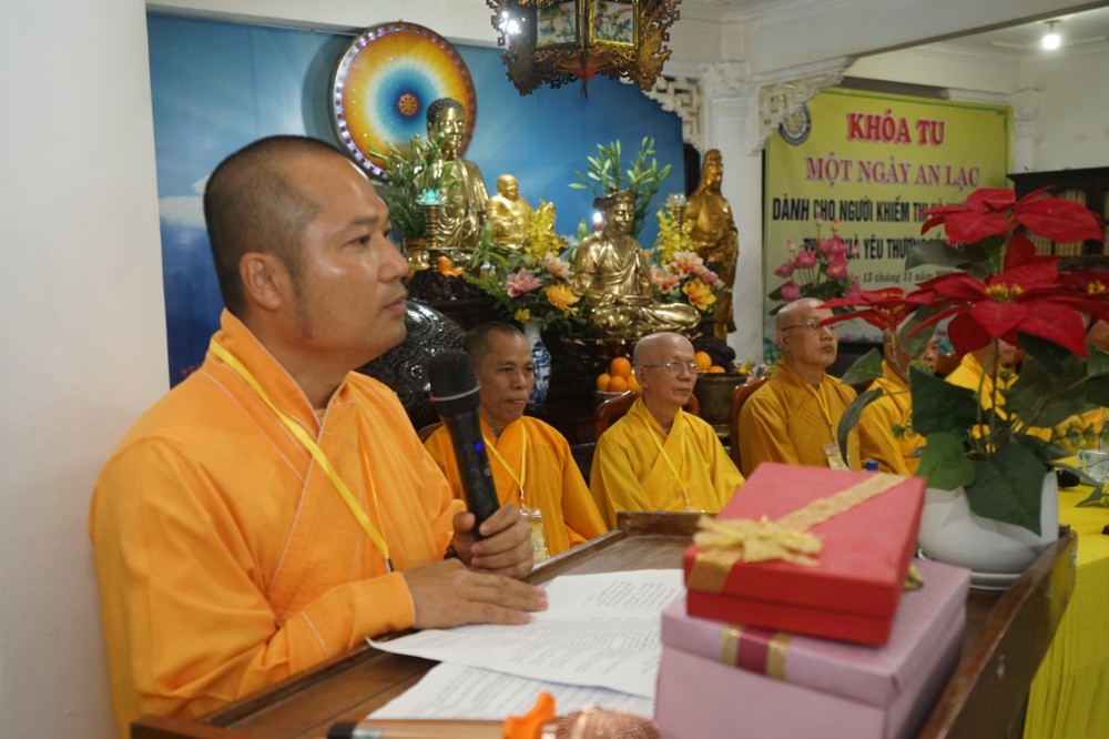 Hòa thượng Thích Từ Nghiêm ban đạo từ tán thán những nổ lực của Chư Tôn đức và các thành viên Phân ban Cư sĩ đã có nhiều cố gắng tổ chức khóa tu đầy ý nghĩa này, gieo duyên lành cho những người kém may mắn trong cuộc sống được tu tập, được hiểu biết đến giáp pháp nhiệm mầu của Như Lai. Hòa thượng sách tấn các giới tử cố gắng tham dự trọn vẹn khóa tu, dù thân không trọn vẹn nhưng tâm luôn tròn đầy, thực hành những lời Phật dạy để cuộc sống trong kiếp này luôn an lạc, kiếp sau được làm thân người đầy đủ trọn vẹn.