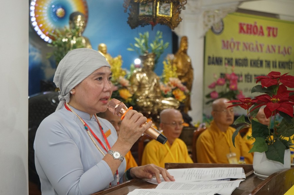 Phát biểu khai mạc, Thượng tọa Thích Nhuận Hòa chia sẻ: “Giáo pháp Đức Thế Tôn là ngọn đuốc trí tuệ soi sáng nẻo về an lạc. Dù thân thể có khiếm khuyết, song ai trong chúng ta cũng đều có ánh sáng của tâm, ánh sáng ấy chính là Phật tánh trong mỗi con người, vốn thanh tịnh, không hề mất đi. Từ tinh thần “Phật pháp bất ly thế gian pháp”, Phân ban Cư sĩ Phật tử Tp Đà Nẵng khởi tâm tổ chức khóa tu này với mong muốn mang giáo pháp nhiệm mầu đến gần hơn với những người kém may mắn trong cuộc sống, để trong một ngày tu học, quý Phật tử khuyết tật, khiếm thị có thể an trú trong chánh niệm, lắng nghe tiếng chuông chùa và cảm nhận niềm an vui nơi tự tâm”.