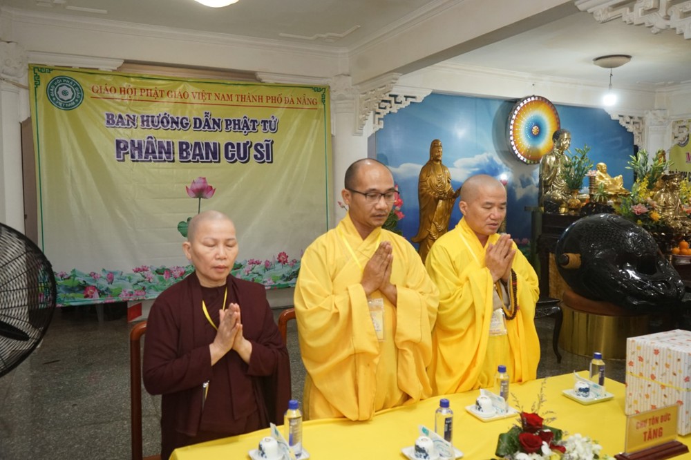 Về phía Phân ban cư sĩ có sự hiện diện của Thượng tọa Thích Nhuận Hòa - Ủy viên Thường trực Ban Trị sự GHPGVN Tp Đà Nẵng, Trưởng Phân ban Cư sĩ Tp Đà Nẵng cùng Chư Tôn đức Tăng, quý Phật tử thành viên Phân ban cư sĩ.