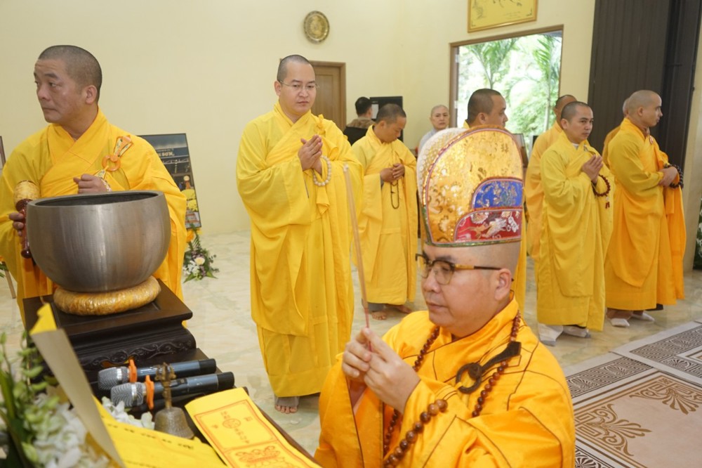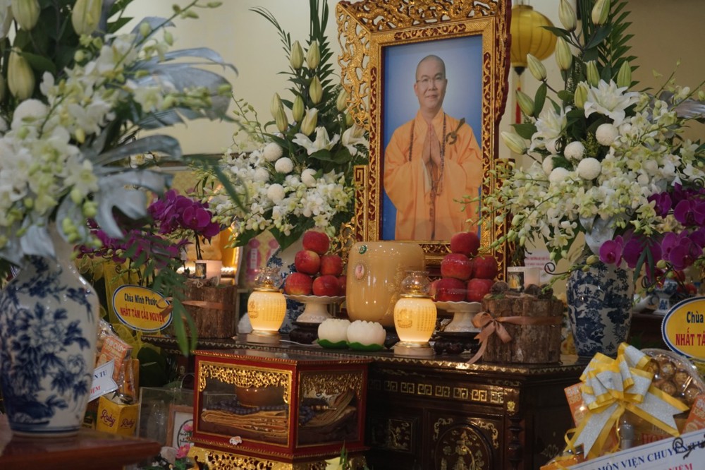 Buổi lễ diễn ra trong không khí trang nghiêm và thanh tịnh, Chư Tôn Đức và các Phật tử thắp hương tưởng nhớ về một vị Tăng trẻ có tinh thần nhiệt huyết trong mọi công tác Phật sự.