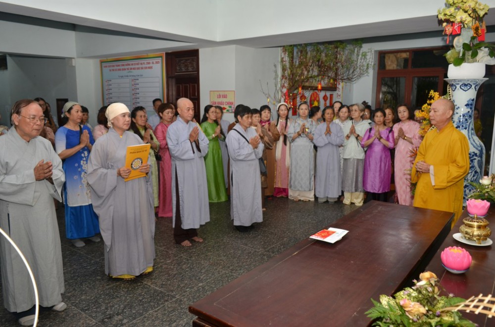 Tại các chùa, Thượng toạ Trưởng đoàn cùng quý cư sĩ đã thay mặt đoàn tác bạch cúng dường và khánh chúc Chư Tôn Đức pháp thể khinh an, thân tâm thường lạc. Chư Tôn Đức trú trì tại các tự viện đã đáp từ và chia sẽ một thời pháp thọai ngắn đầu Xuân, cầu chúc phái đoàn một năm mới được nhiều hỷ lạc, tinh tấn tu học để phụng đạo giúp đời.