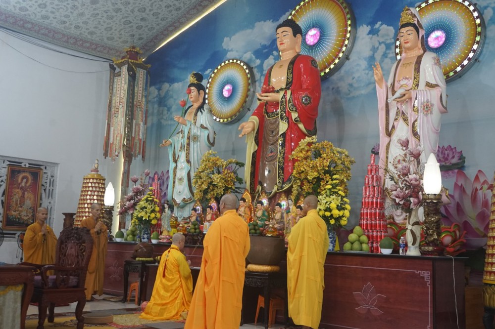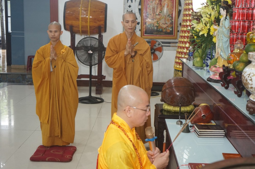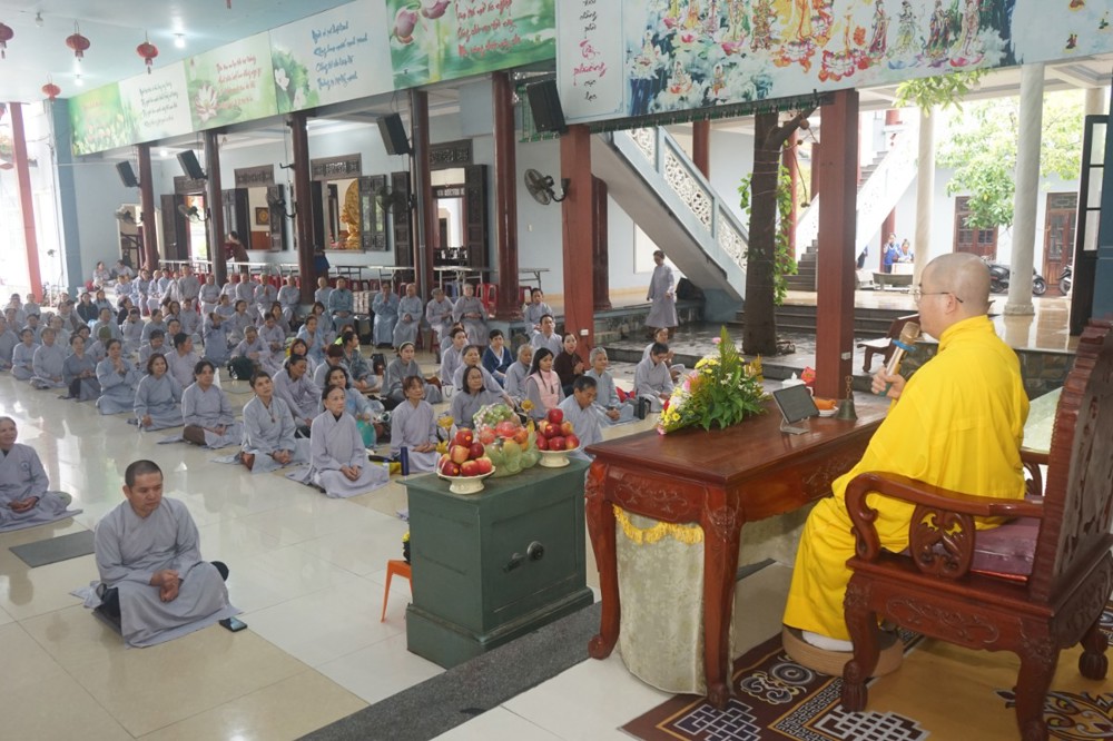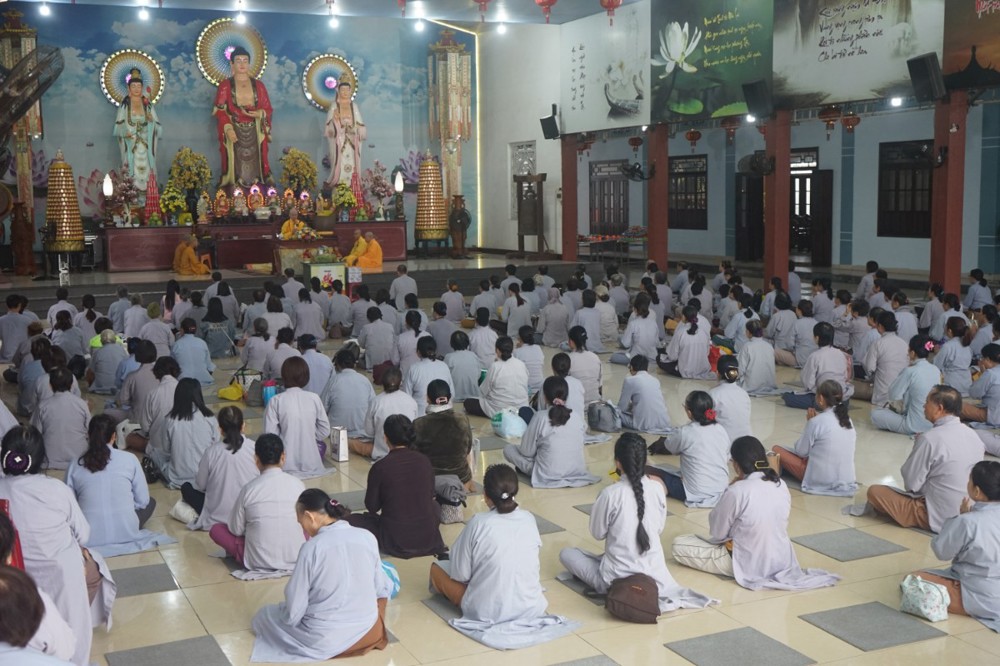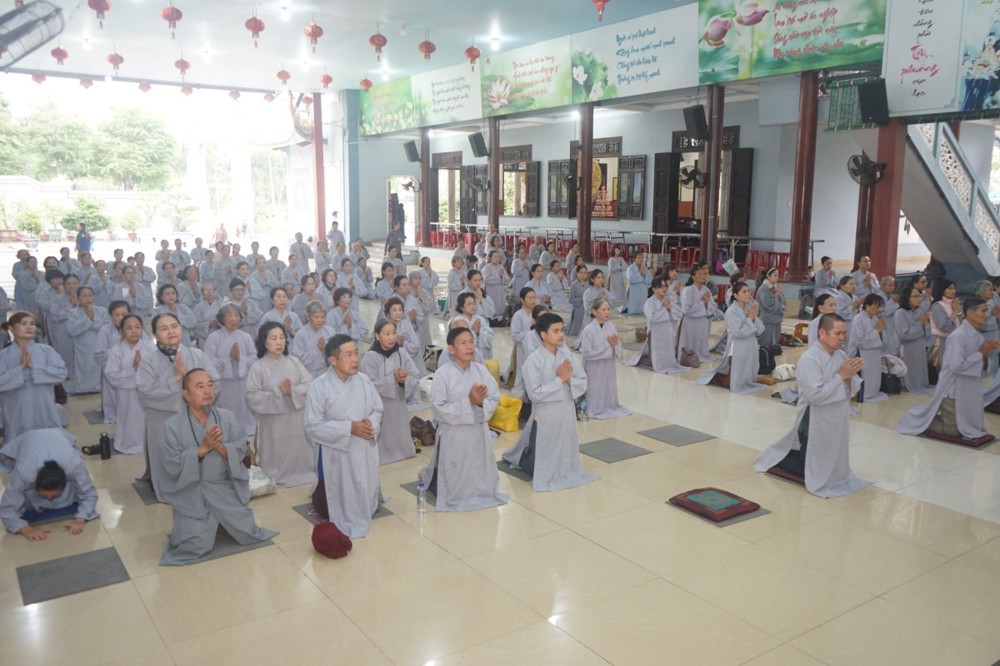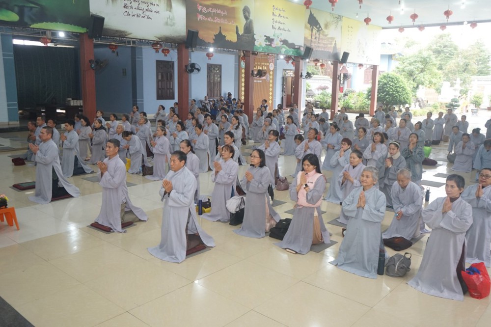Theo thời khóa tu học của khóa tu “Một ngày an lạc” hàng tháng tại chùa Bà Đa, các giới tử đã được Chư Tôn đức tại chùa Bà Đa hướng dẫn tụng kinh, niệm Phật, dùng cơm trong chánh niệm, thiền hành.
