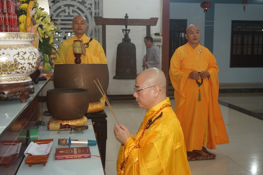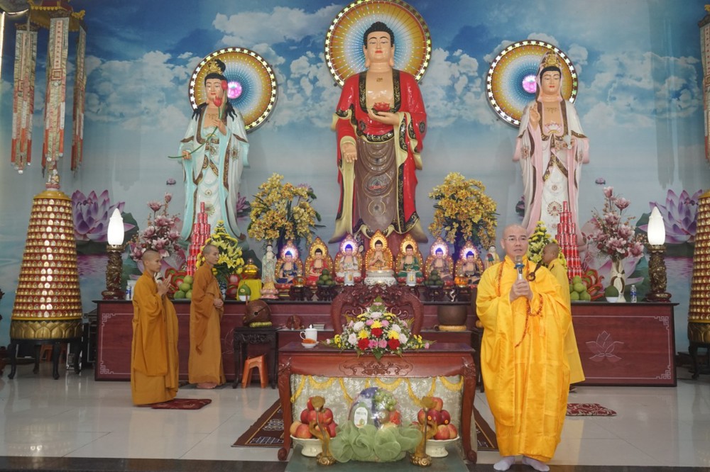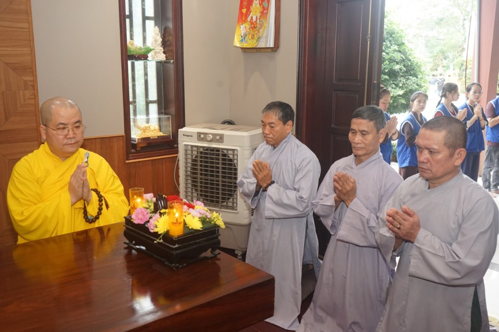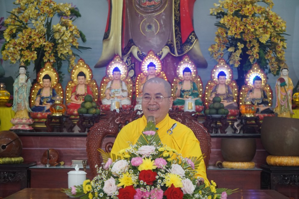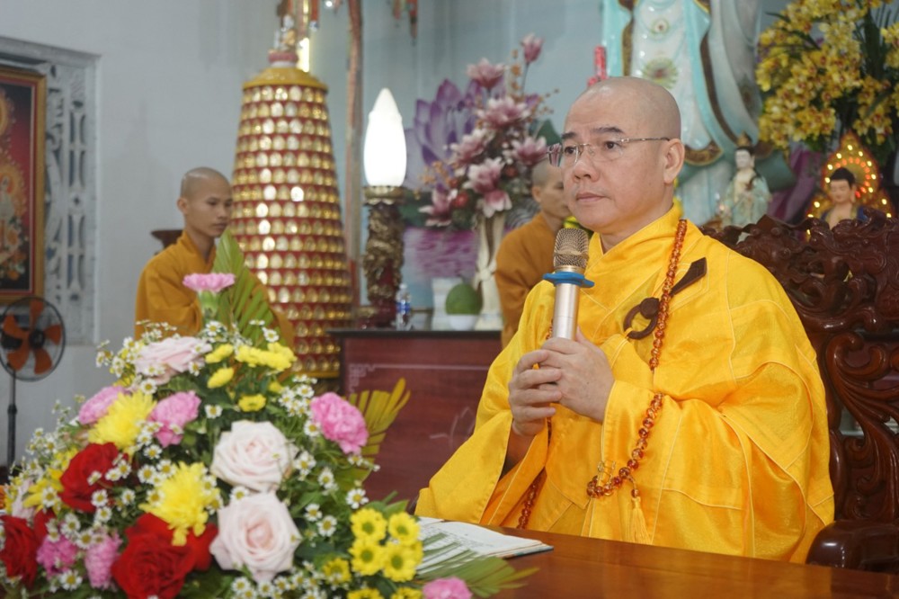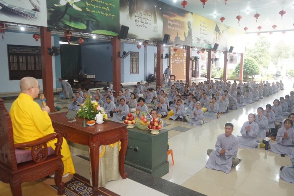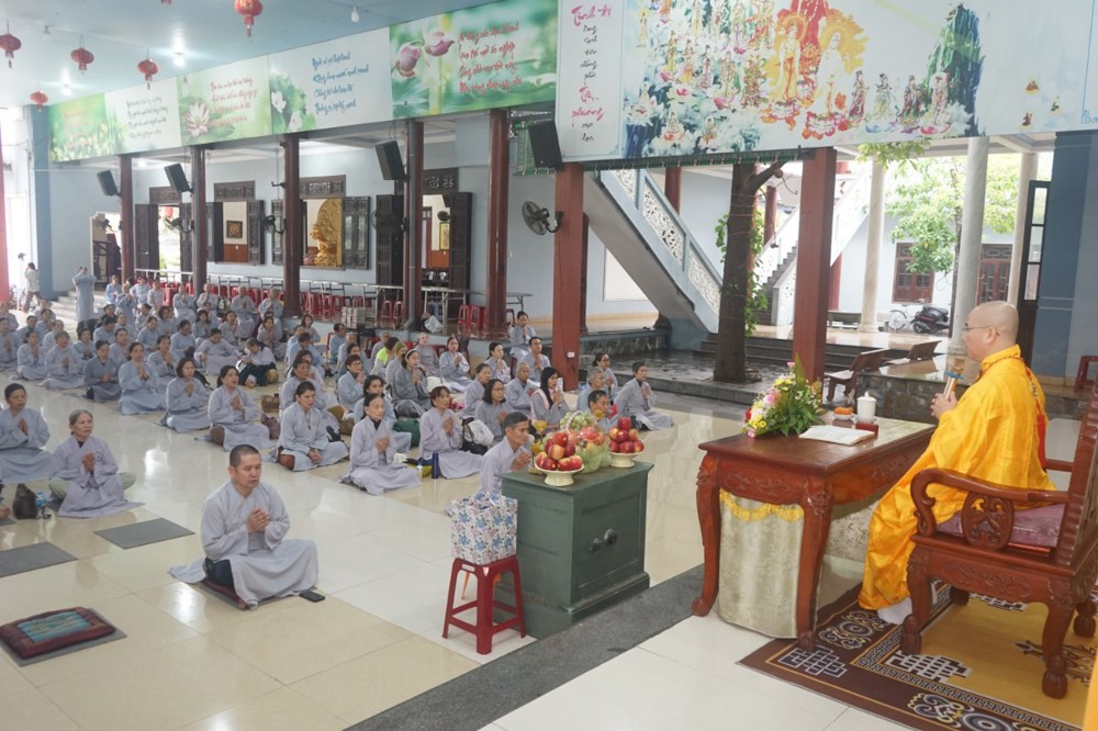 Thượng tọa Thích Thông Đạo - Ủy viên Hội đồng Trị sự, Phó trưởng ban Thường trực Ban Trị sự GHPGVN Tp Đà Nẵng, Trú trì chùa Bà Đa đã quang lâm truyền giới Bát Quan trai cho các giới tử tham dự khóa tu.