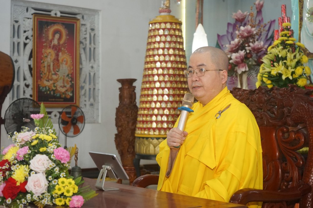 Tiếp đó Ban tổ chức đã cung thỉnh Thượng tọa Thích Huệ Chấn – Phó trưởng Ban hoằng pháp GHPGVN Tp Đà Nẵng, Phó hiệu trưởng Trường trung cấp Phật học Đà Nẵng, Trú trì chùa Hưng Quang quang lâm chia sẻ pháp thoại đến các giới tử tham dự khóa tu.