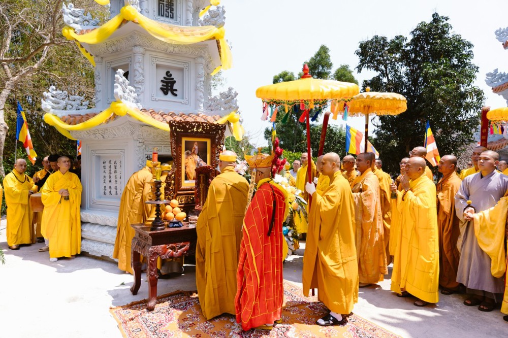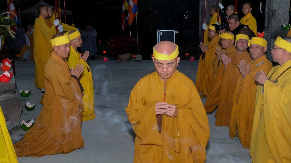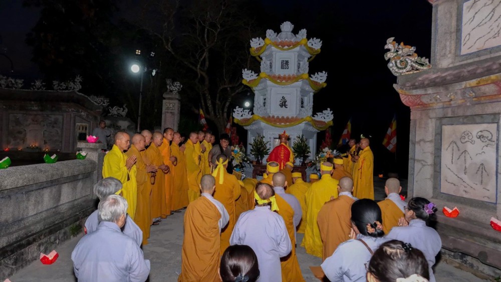 Trước đó, chiều tối ngày 23/3/2026 (nhằm mồng 5 tháng 2 năm Bính Ngọ), tại Tổ đình Chúc Thánh đã diễn ra các nghi lễ: cung thỉnh linh cốt an vị tại Tổ đường; lễ bạch Phật khai kinh, thí thực cô hồn; và lễ sái tịnh bảo tháp.