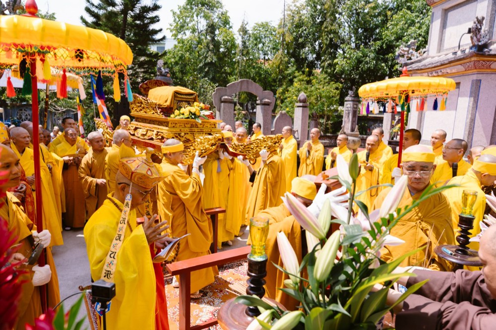 Tại buổi lễ, chư Tôn đức thành kính đảnh lễ Giác linh, niêm hương cầu nguyện và cử hành các nghi thức truyền thống trong Lễ Tam thất trai tuần. Trong không khí trang nghiêm, đại chúng đã cung thỉnh linh cốt Trưởng lão Hòa thượng từ Tổ đường đến an vị tại bảo tháp trong khuôn viên Tổ đình, thể hiện lòng tri ân sâu sắc và tưởng niệm bậc long tượng của Giáo hội.