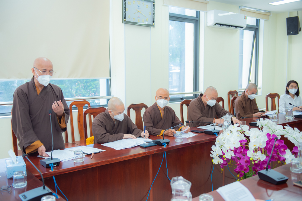Tại buổi họp, HT.Thích Huệ Thông trình bày thông tư 245 của Hội đồng Trị sự và kế hoạch tổ chức Đại lễ kỷ niệm 40 thành lập GHPGVN. Theo đó, để phù hợp với tình hình dịch Covid; tất cả các Ban, Viện TƯ, Ban Trị sự Phật giáo các tỉnh, thành phố sẽ phối hợp cùng HĐTS tổ chức Đại lễ mít tinh trọng thể kỷ niệm 40 thành lập GHGPVN vào cùng một buổi trực tuyến đúng 8h00 ngày 7/11/2021. Cũng như các tỉnh thành, TP.HCM sẽ tổ chức Đại lễ tại trụ sở UB MTTQVN TP.HCM (55 Mạc Đỉnh Chi, Quận 1), tập trung nguồn lực ủng hộ công tác phòng chống dịch tại địa phương.