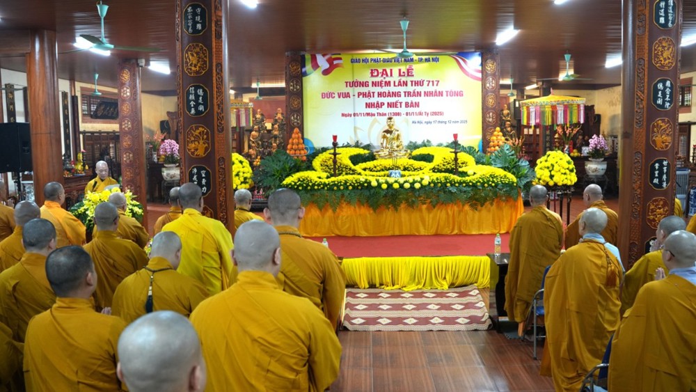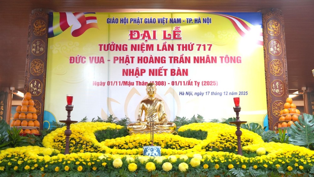 Thực hiện Thông bạch hướng dẫn của Hội đồng Trị sự Giáo hội Phật giáo Việt Nam, sáng ngày 17/12/2025 (nhằm ngày 28/10 năm Ất Tỵ), Giáo hội PGVN Thành phố Hà Nội đã phối hợp với Trường Trung cấp Phật học TP Hà Nội – chùa Đại Từ Ân long trọng tổ chức Đại lễ tưởng niệm lần thứ 717 Đức Vua – Phật Hoàng Trần Nhân Tông nhập Niết Bàn.